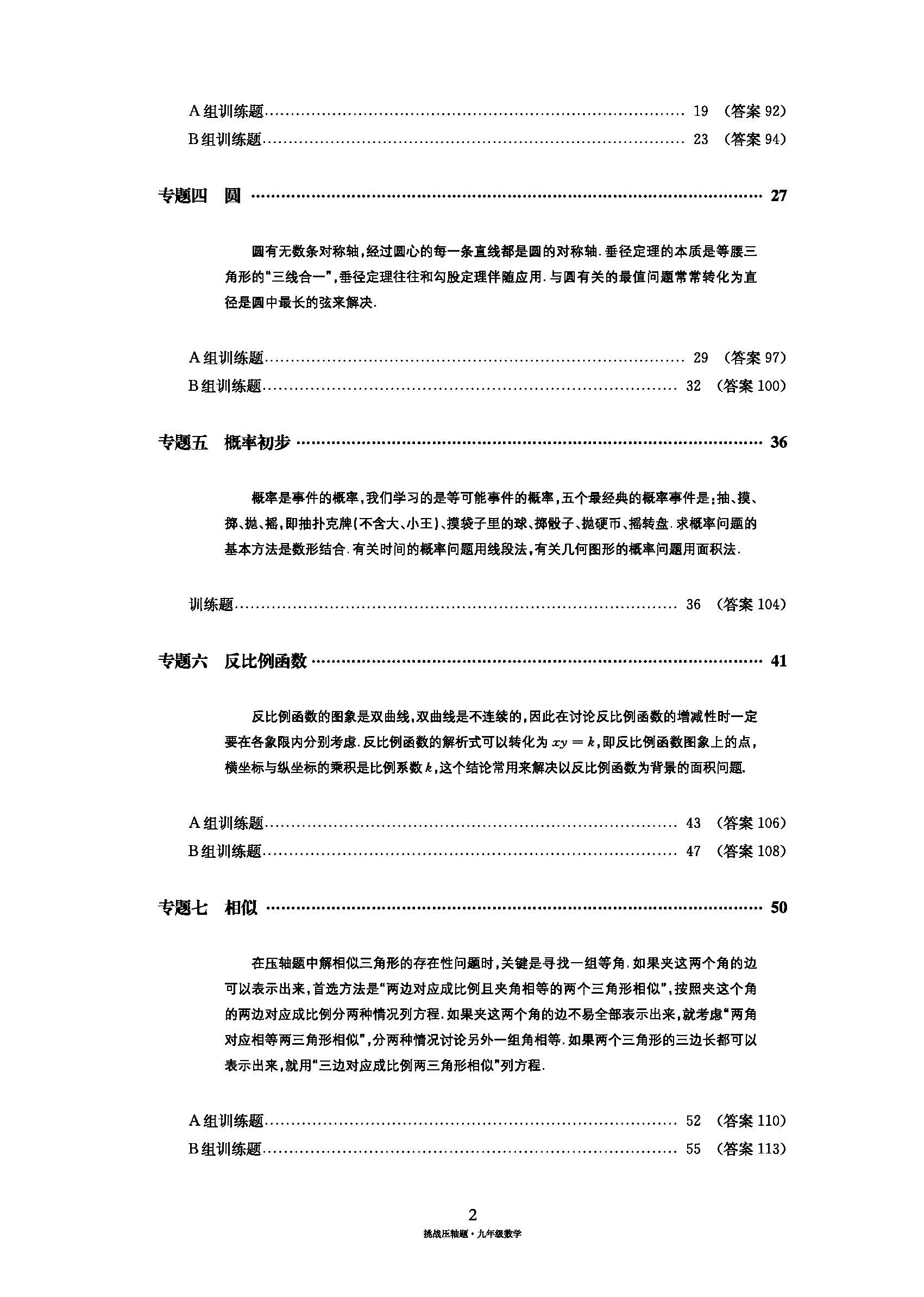 《挑战压轴题 九年级》目录