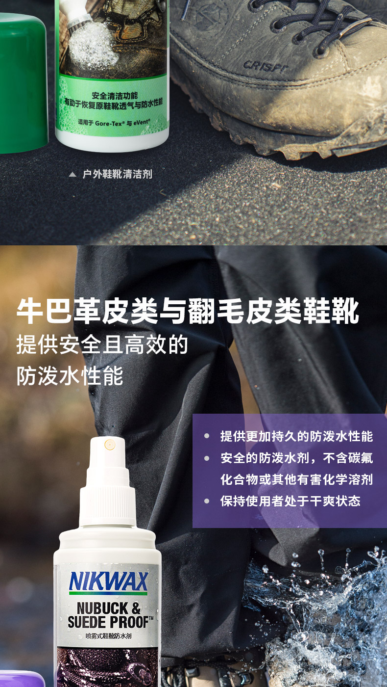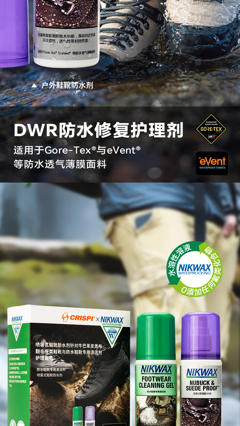 CRISP x NIKWAX 176 户外鞋清洗喷雾式防水剂套装(适用于全皮登山鞋)