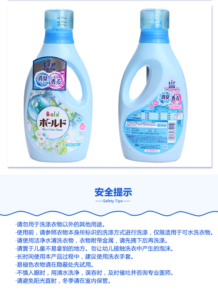 日本宝洁花香洗衣液 浓缩柔顺剂花果香护色 无荧光剂 640g瓶装