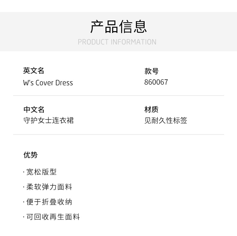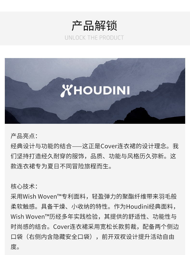 HOUDINI胡丁尼 Cover Dress守护女户外夏季轻薄休闲宽松长裙 860067