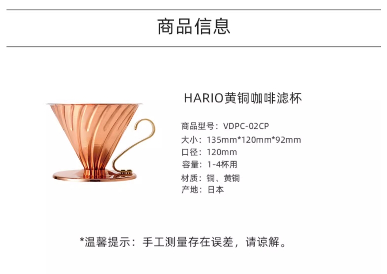 HARIO黄铜咖啡滤杯家用咖啡器具V60滴滤杯手冲滤杯