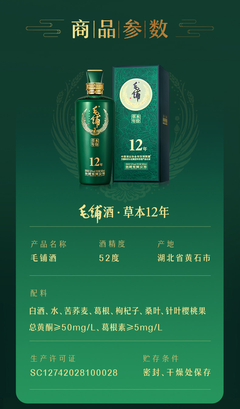 【标准版】500mL52度毛铺草本年份酒·草本12年