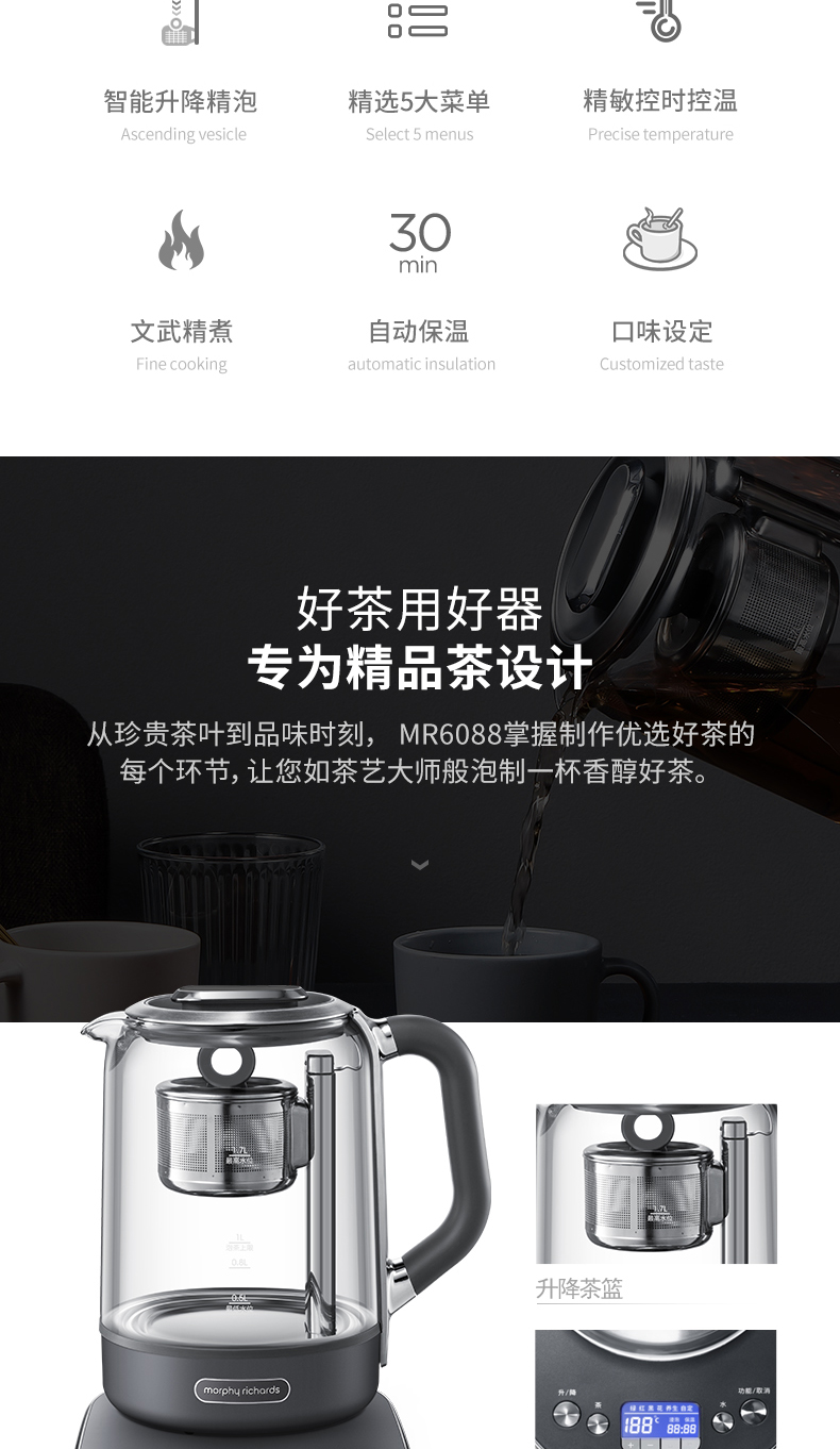 【morphyrichards摩飞】多功能升降煮茶器办公室全自动小型养生壶家用大容量花茶壶