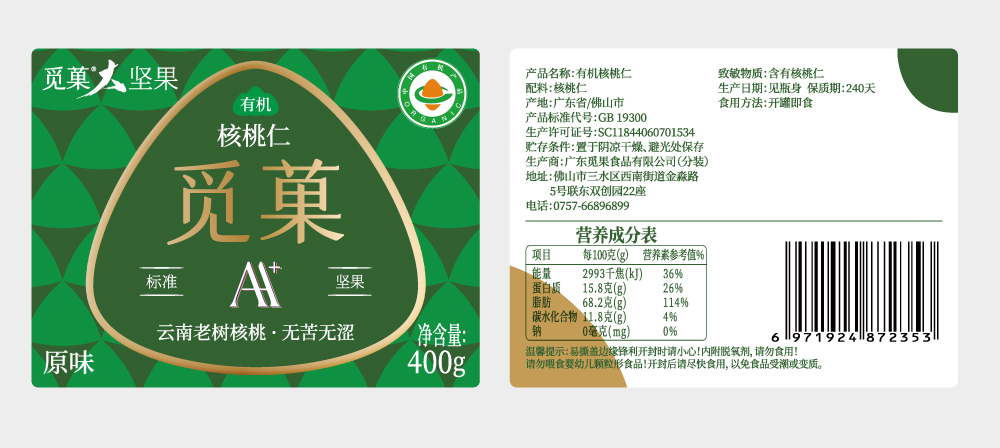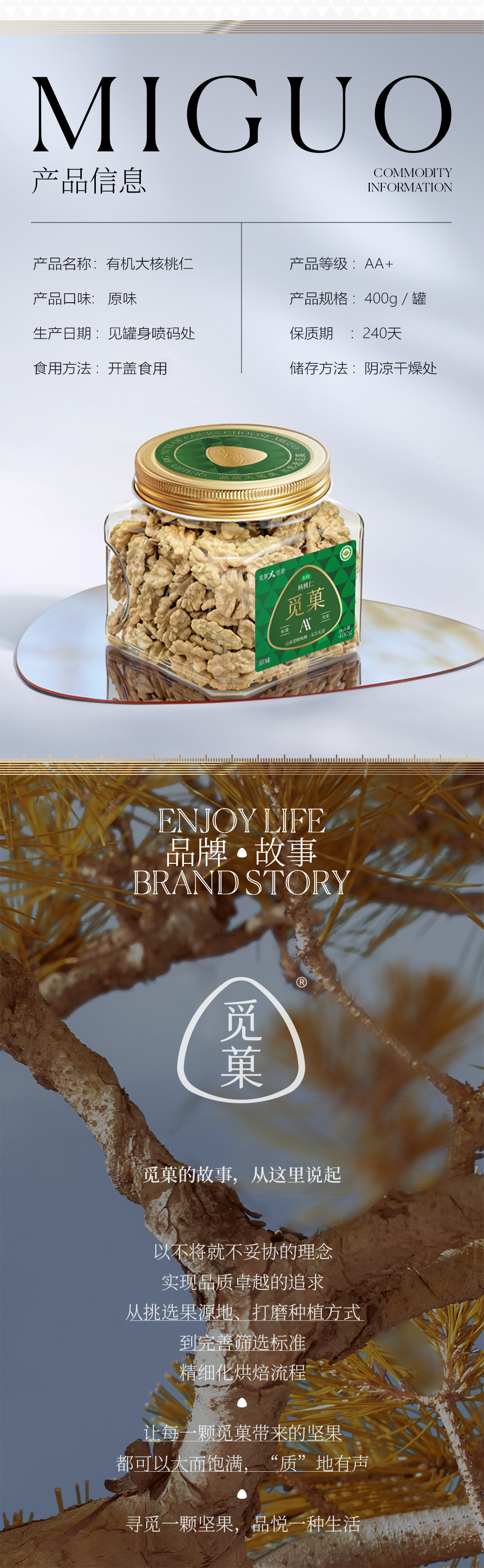 觅菓有机AA+云南纸皮晚熟大核桃原味孕妇大坚果新货400g罐装零食