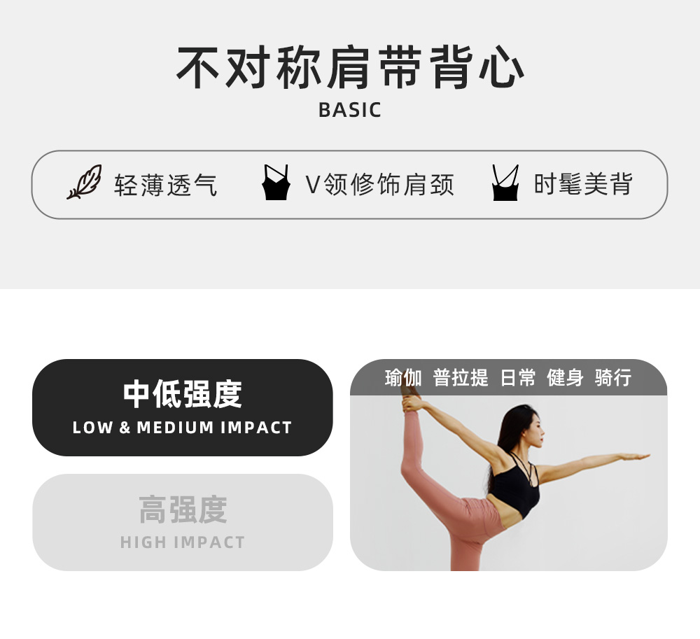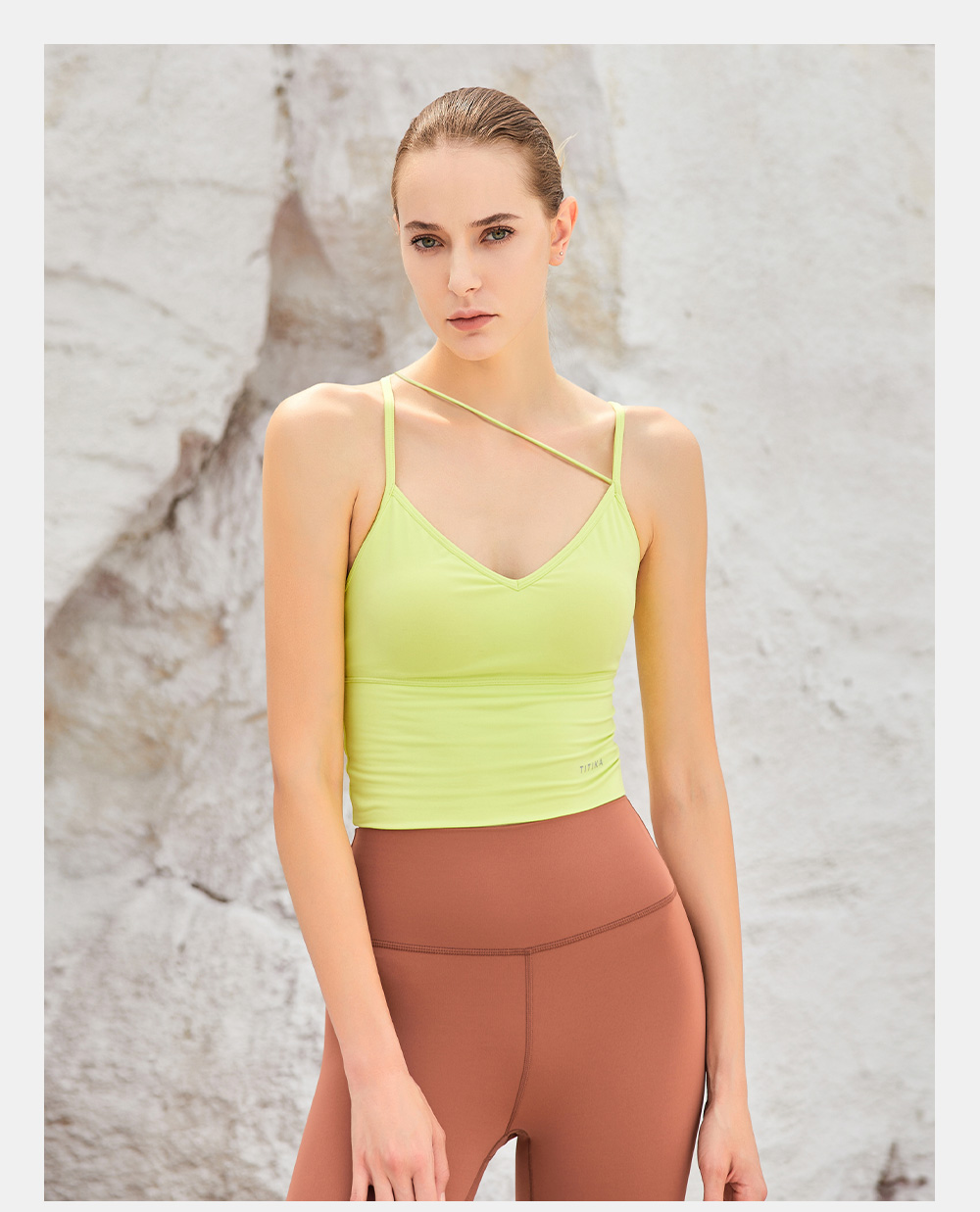 TITIKA不对称肩带背心女运动健身轻薄透气美背休闲上衣(带胸垫)BASIC