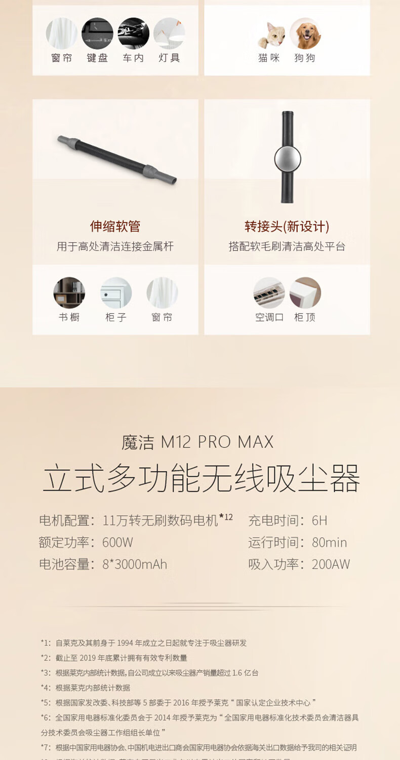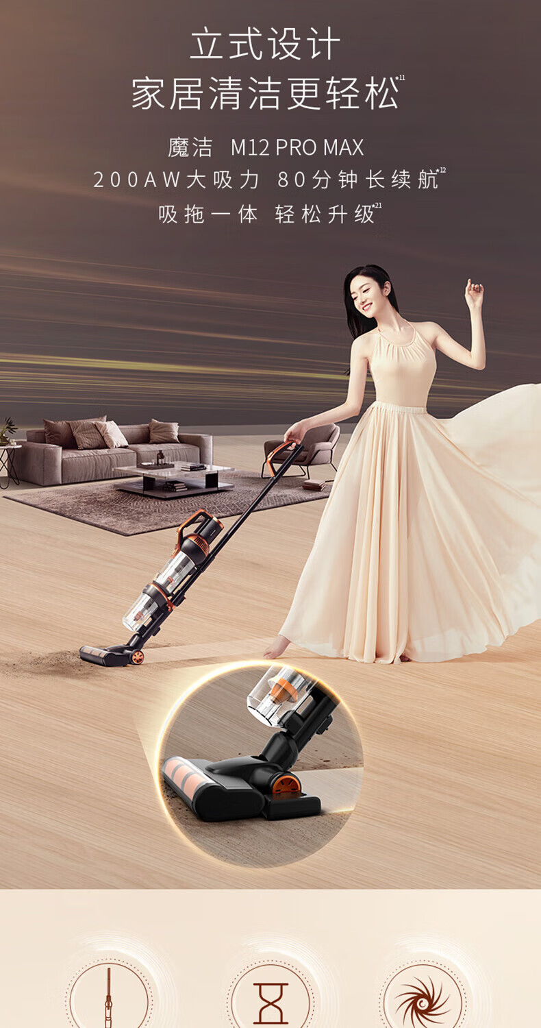 莱克(LEXY)家用吸尘器无线立式手持除螨杀菌吸拖一体机大吸力 M12ProMAX