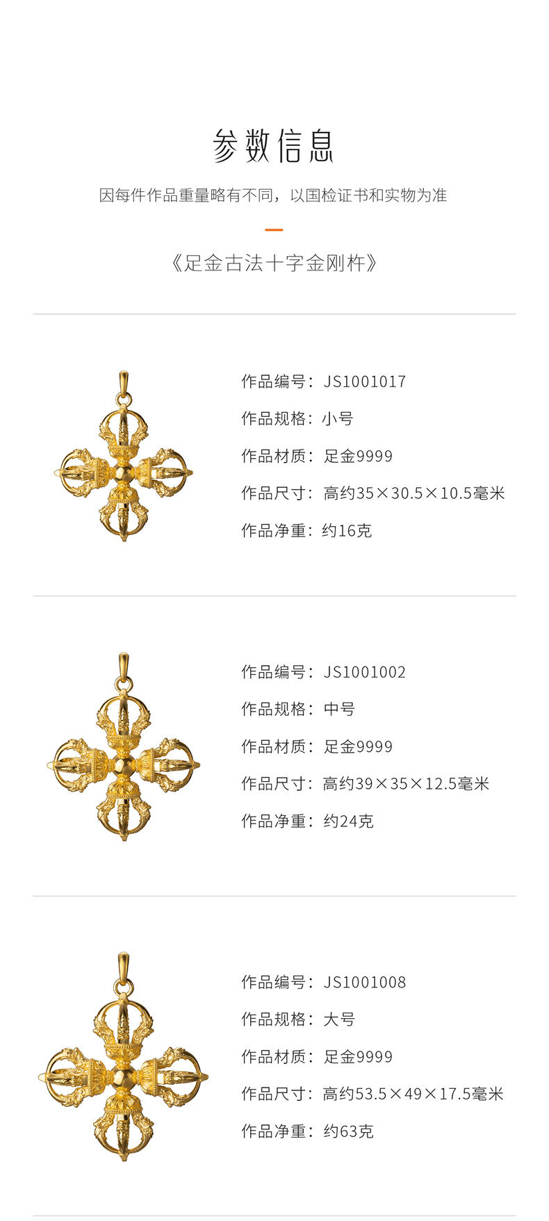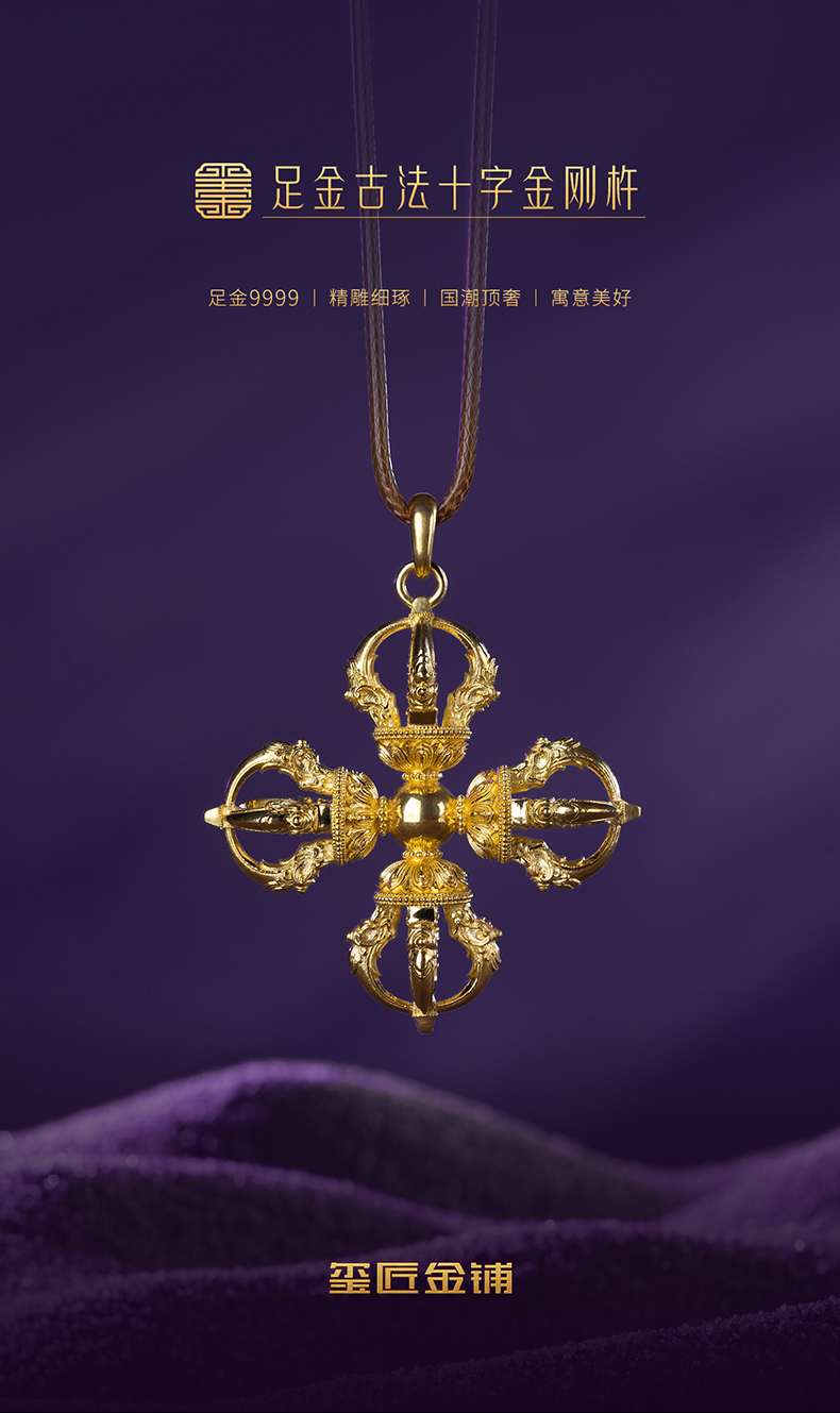 玺匠金铺《足金古法十字金刚杵》足金9999黄金吊坠 吉祥饰品挂件