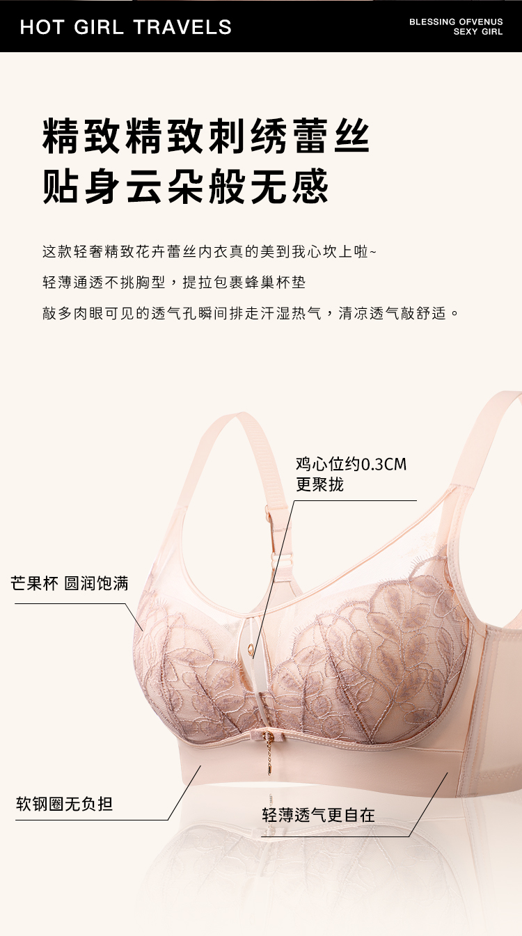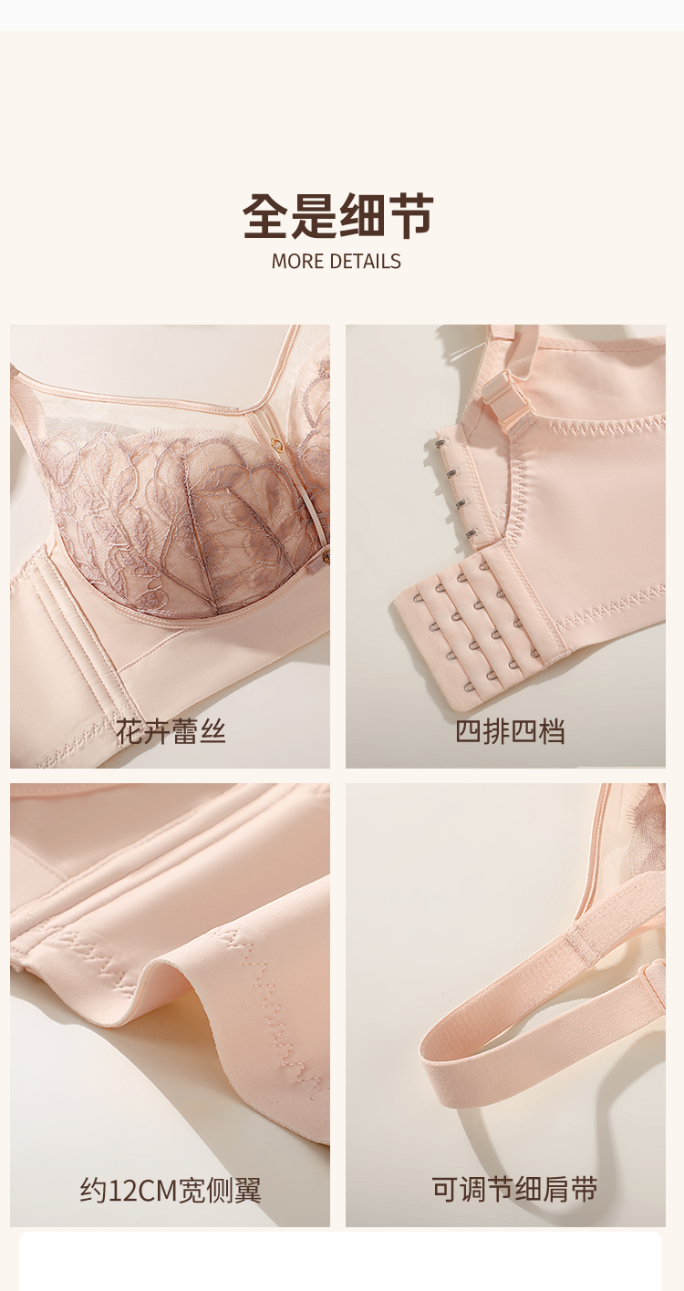 D2-💟【B-C杯】【大胸显小】【超薄透气 大胸显小】薄款蕾丝性感内衣软钢圈聚拢美背文胸罩 落樱纷纷/流光夕雨