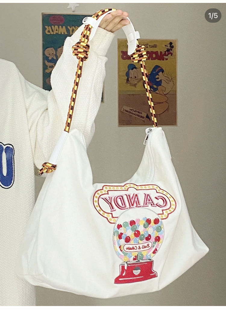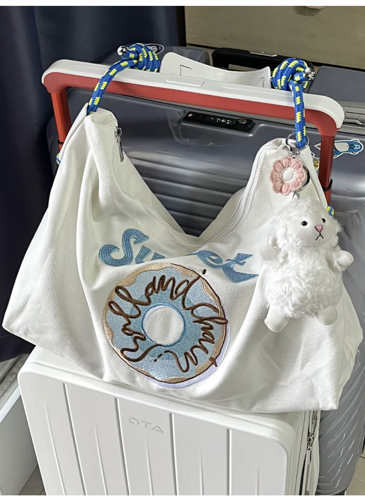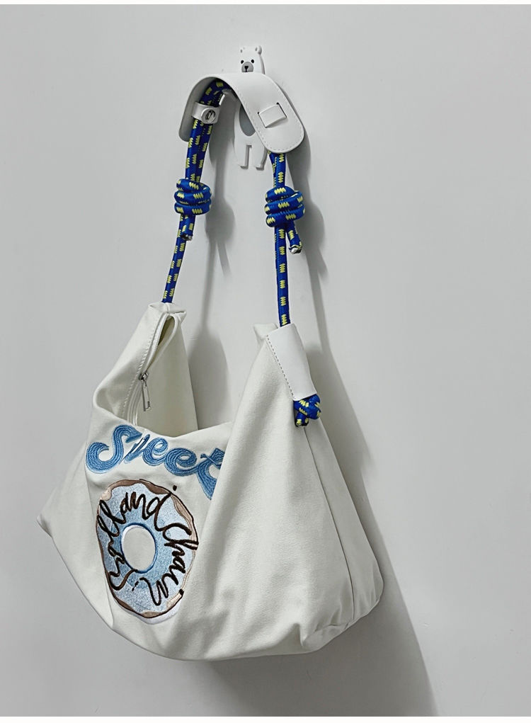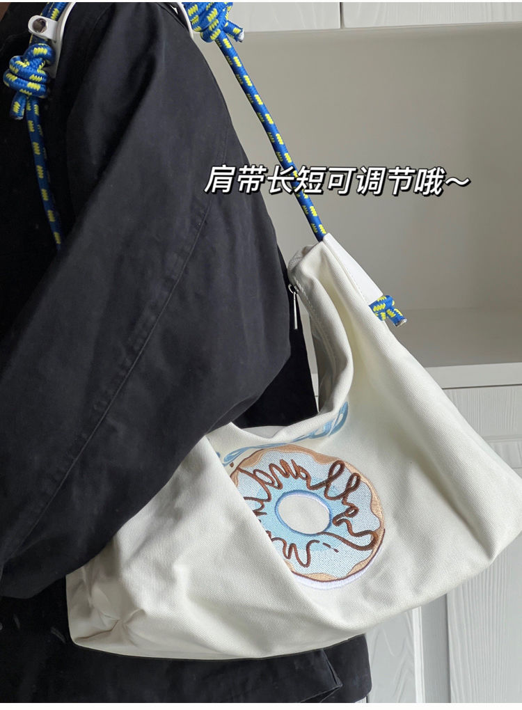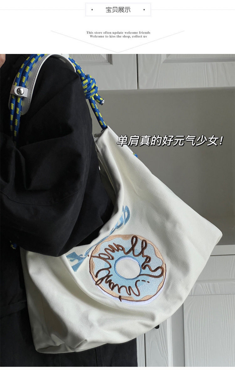春夏百搭日本小众潮牌质感帆布大容量托特包时尚刺绣单肩包腋下包