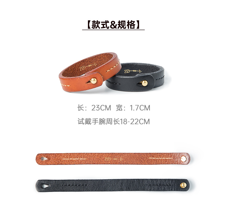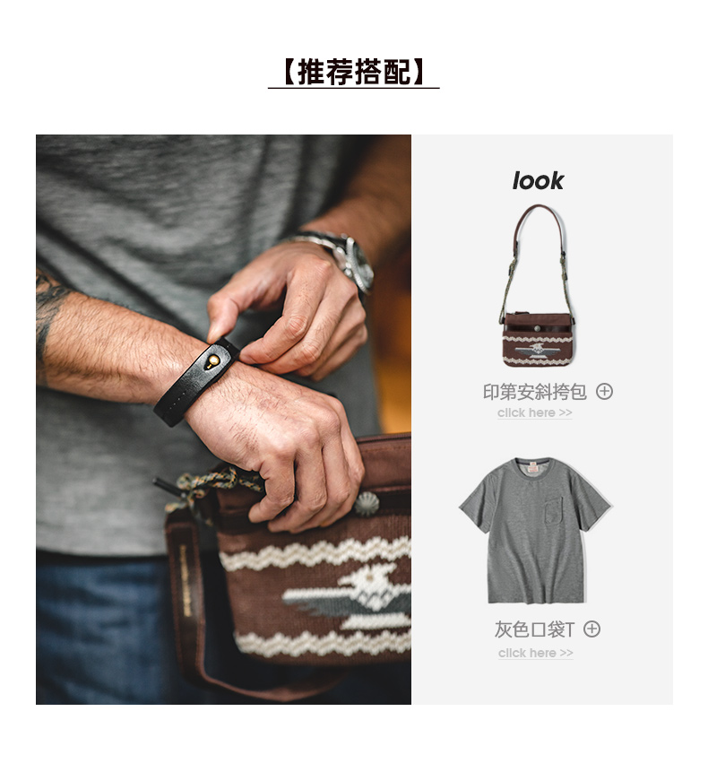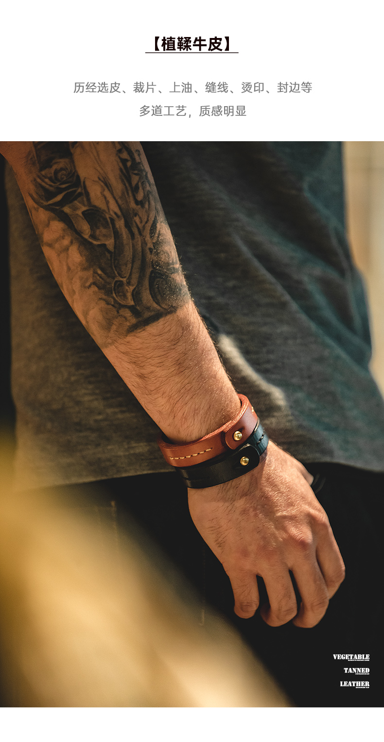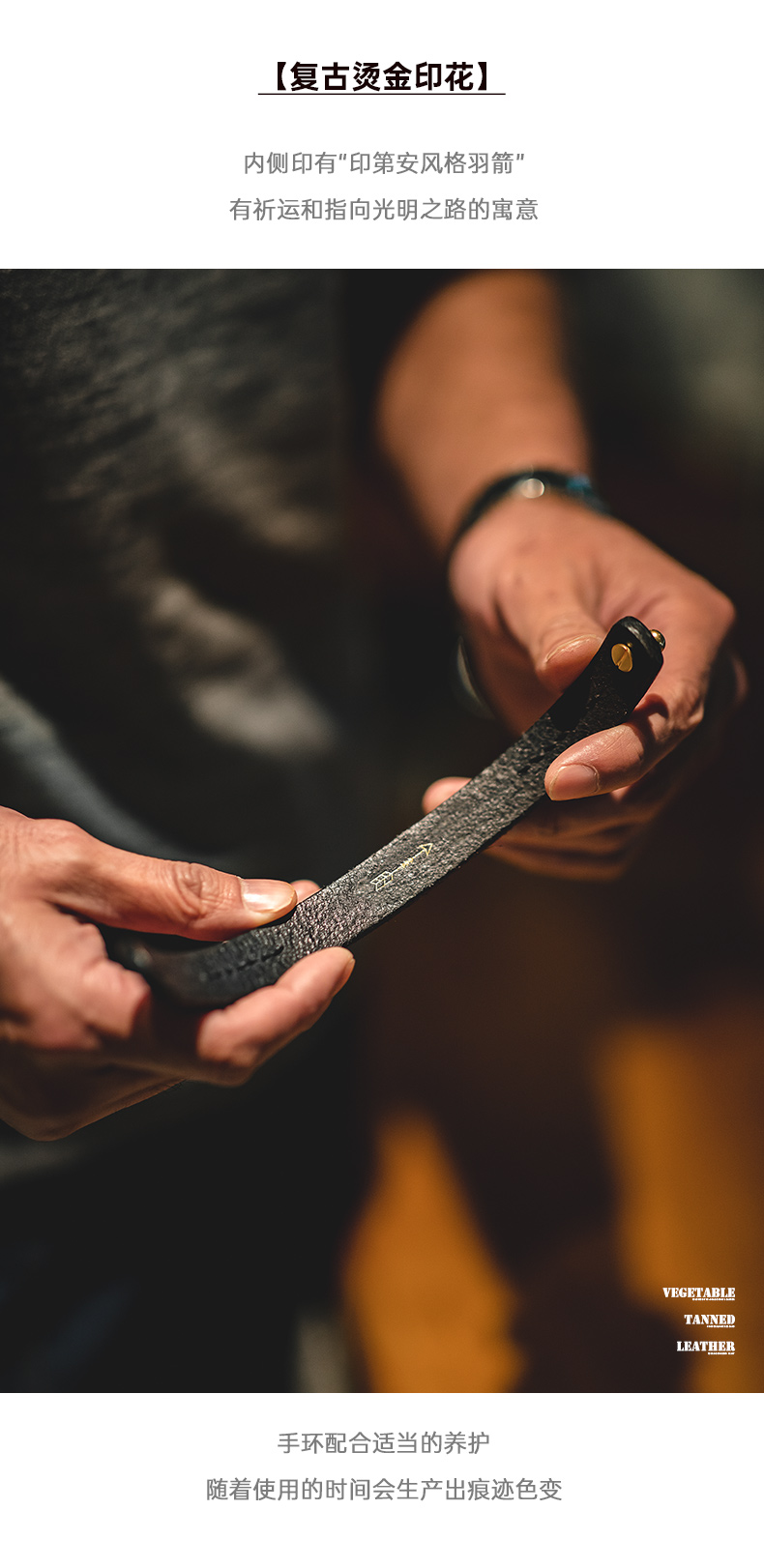 工装优选复古植鞣牛皮烫金手环阿美咔叽印第安宽手镯手腕配饰品男