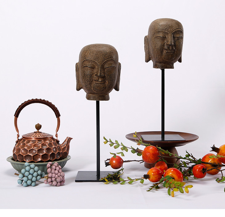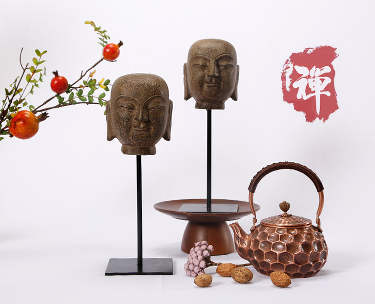青石和尚石头人物摆件中式禅意创意造型软装饰品桌面摆件
