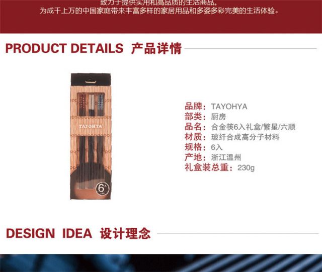 【6F】多样屋合金筷子家用耐高温6双礼盒装繁星六顺筷子
