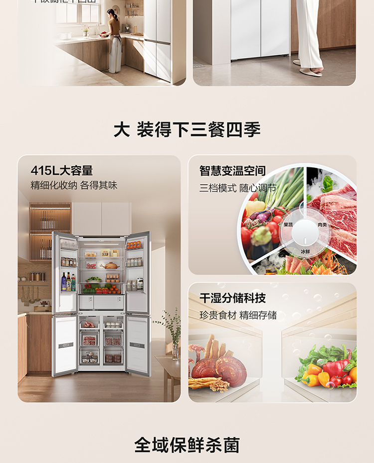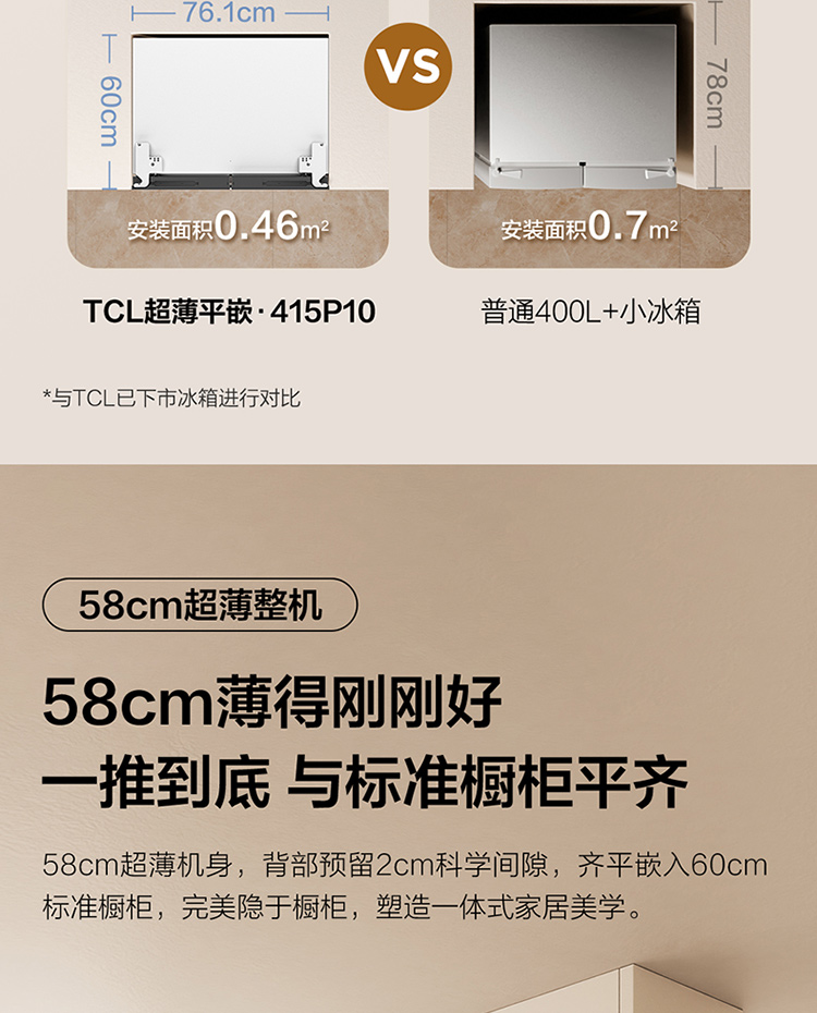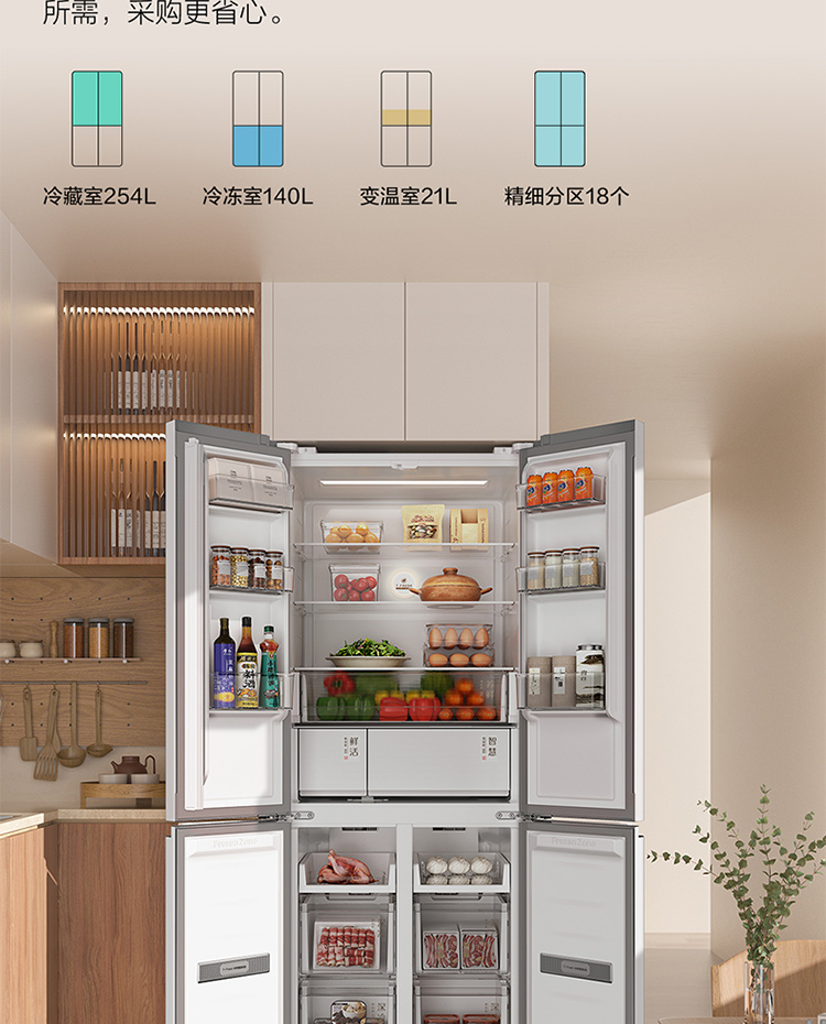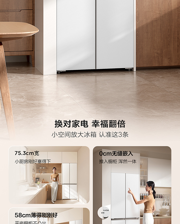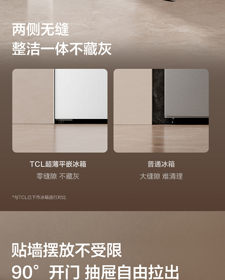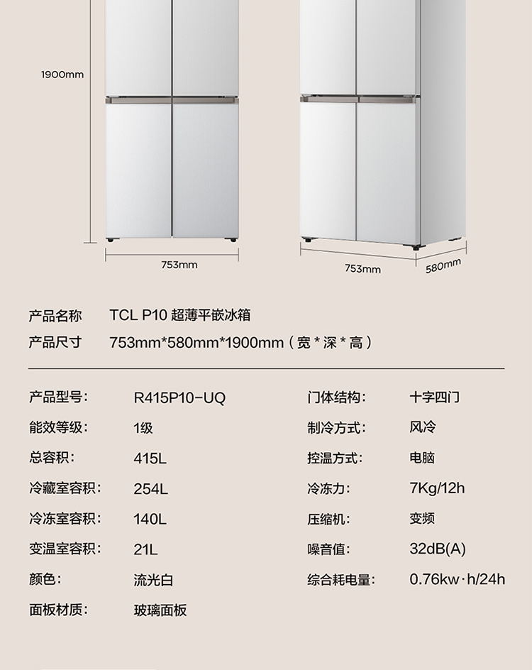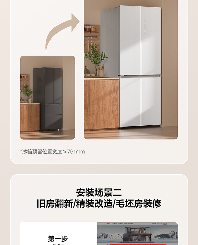 【TCL冰箱】415升十字门嵌入式冰箱 0cm无缝嵌入 58cm厚度 智慧变温空间 干湿分储 R415P10-UQ