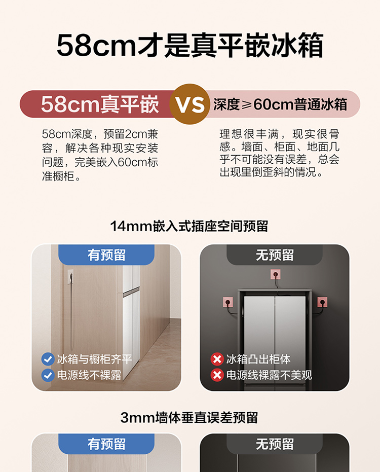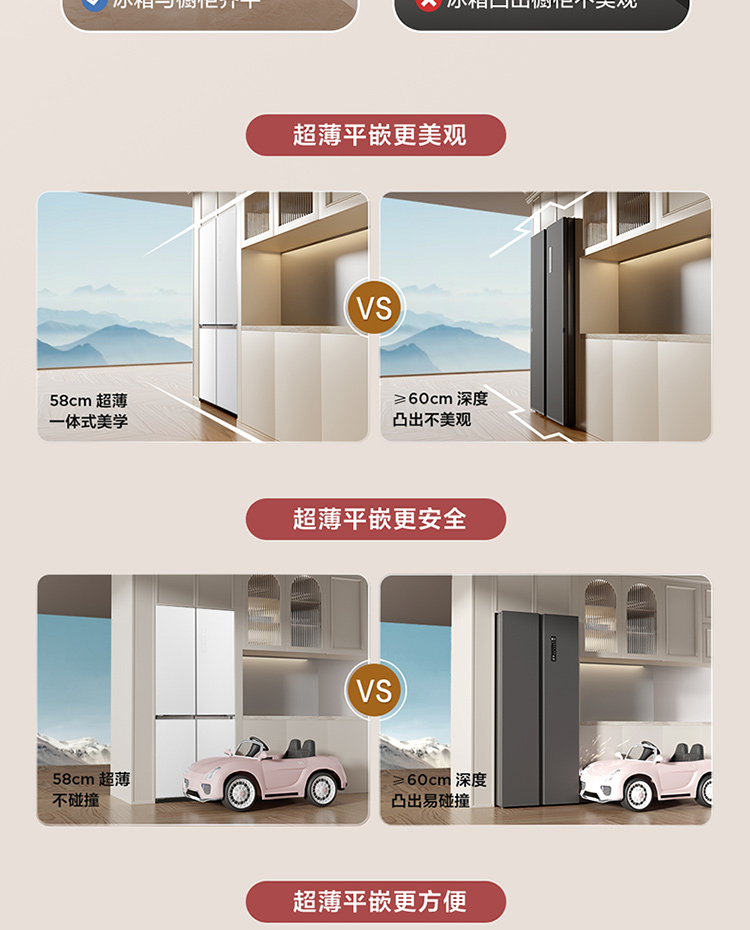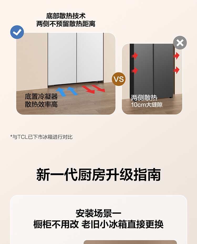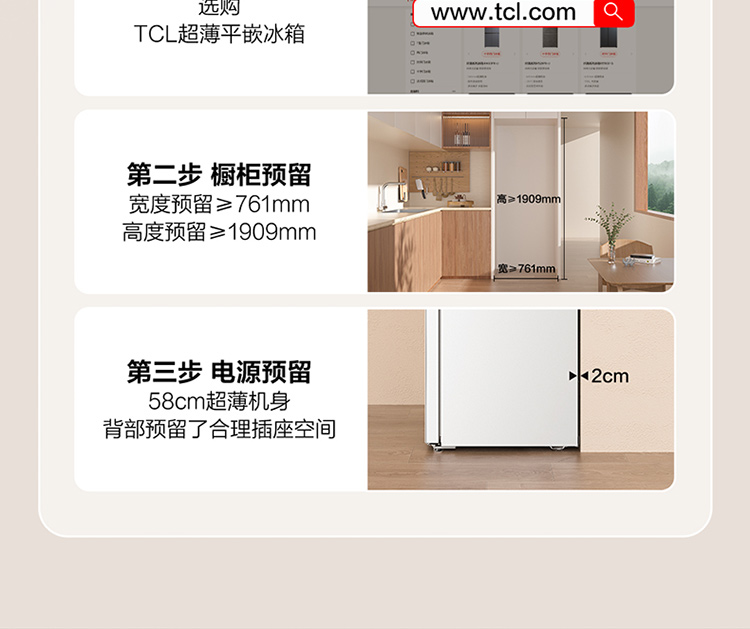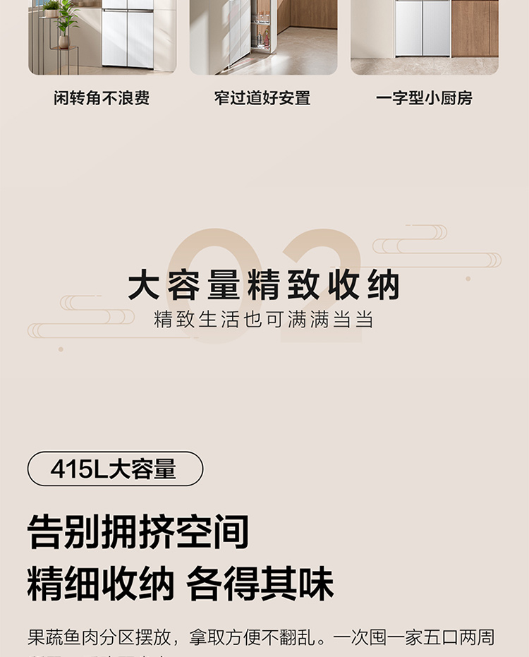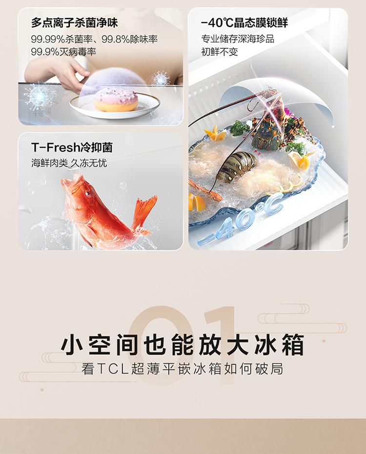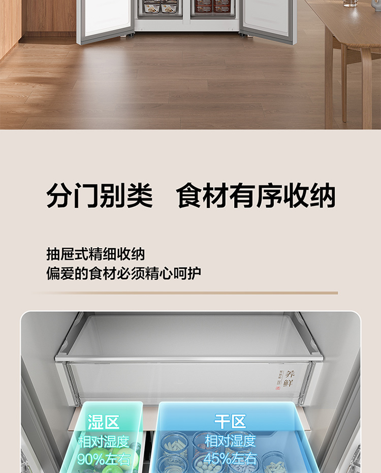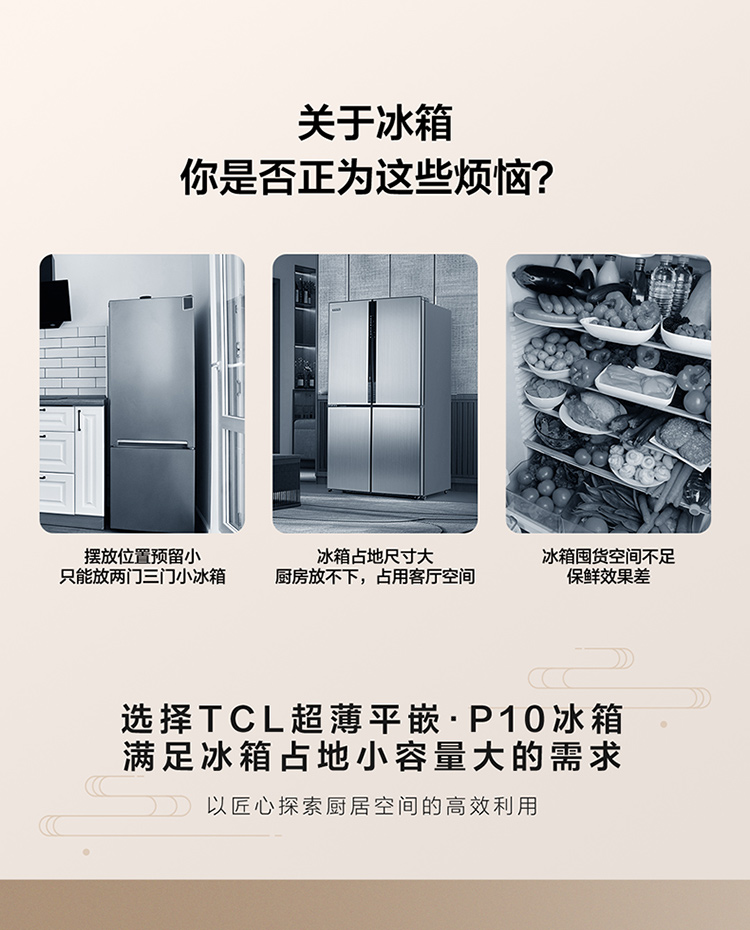 【TCL冰箱】415升十字门嵌入式冰箱 0cm无缝嵌入 58cm厚度 智慧变温空间 干湿分储 R415P10-UQ