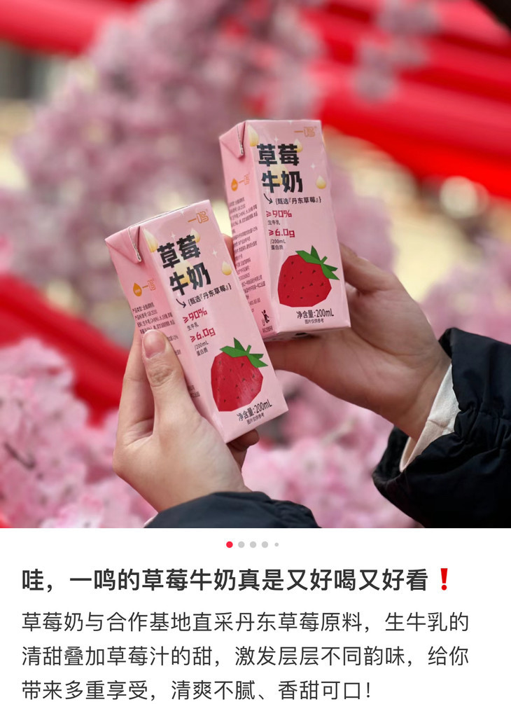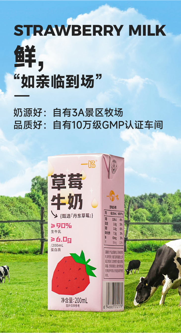 一鸣的牛奶,奶源来自品牌自有的有机牧场,位于浙江泰顺县海拔800米的高山上,这里被誉为“天然氧吧”,空气清新,环境优美。牧场中的每一头牛都经过严格把关,纯自然饲养过程保证了奶源的健康与无污染,品质上乘,每一口都是安心之选。同时,一鸣还精选品质优秀的草莓、可可、红枣、香蕉、哈蜜果、荔浦芋头等后加入到牛奶中,口感更加甜美!牛奶中生牛乳含量高达80-90%,钙含量也狠高,好喝的同时,营养一点不输哦!