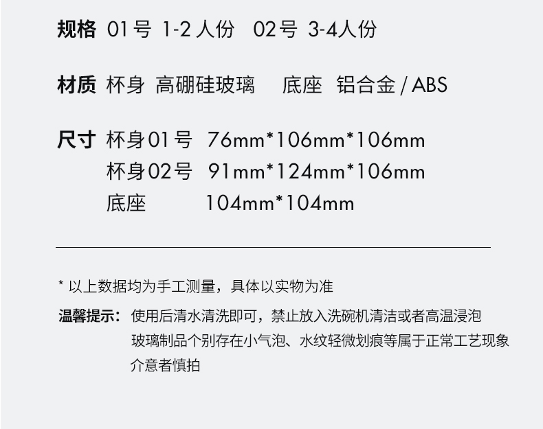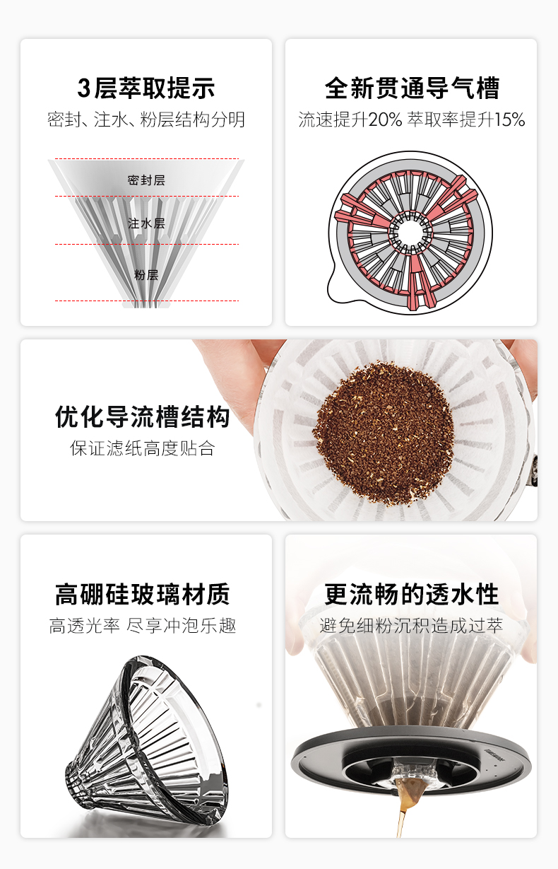 泰摩【材质升级】 高硼硅玻璃冰瞳 手冲咖啡滴滤杯 家用煮咖啡壶 咖啡器具套装过滤器