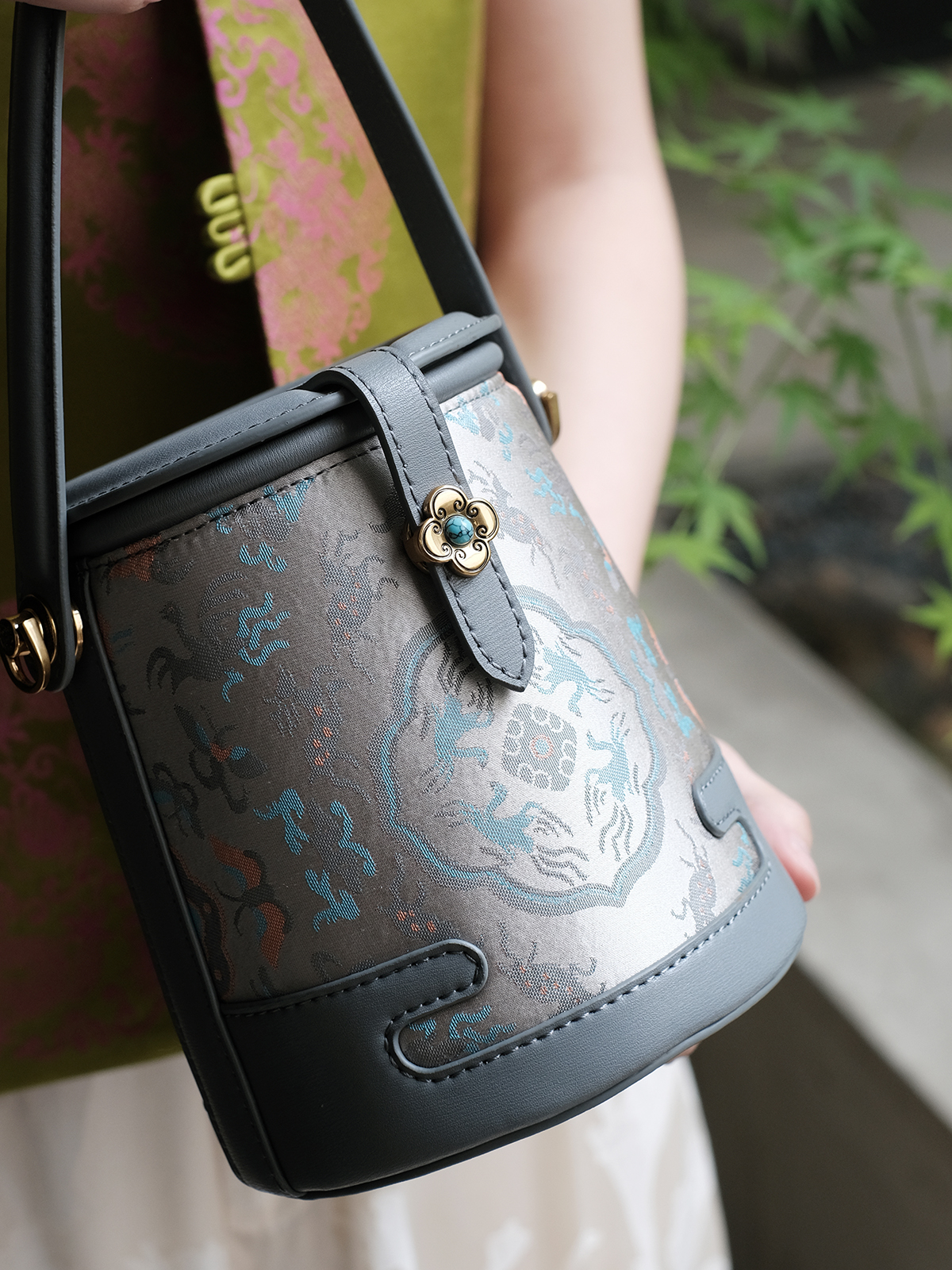 盛唐婧 |真丝宋锦鹤鹿同春水桶包[特价品](特殊商品不退不换)