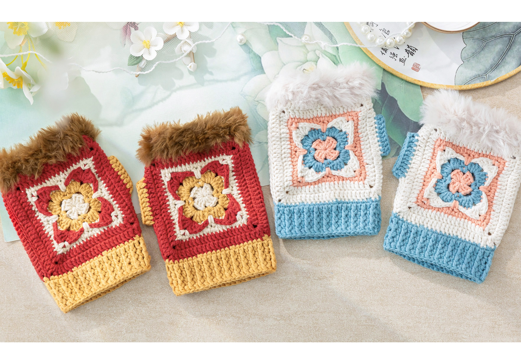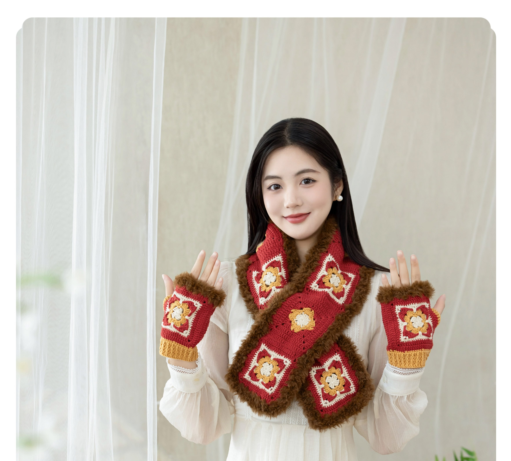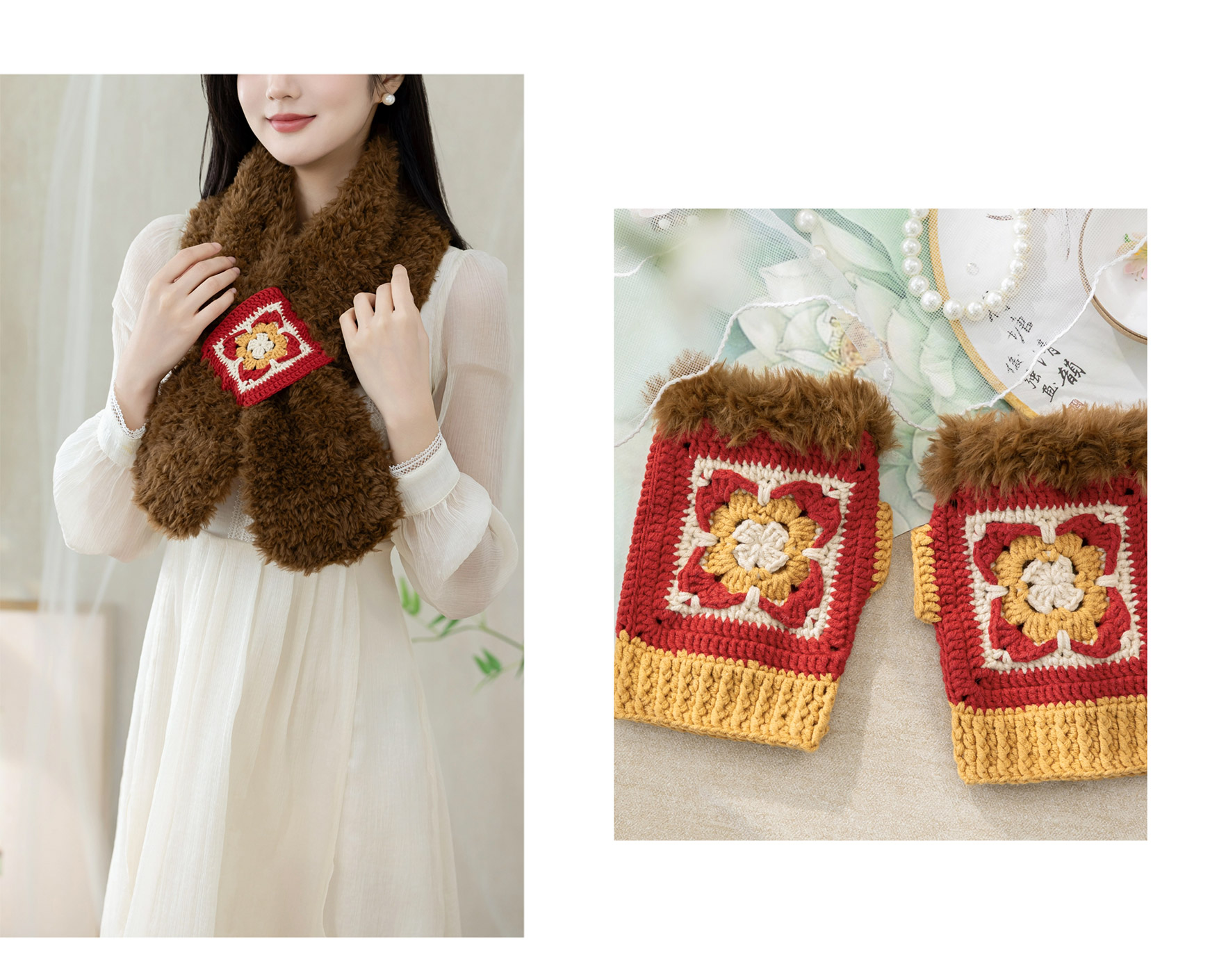 苏苏姐家织锦围脖手套套装手工diy钩针编织围巾毛线团冬季材料包
