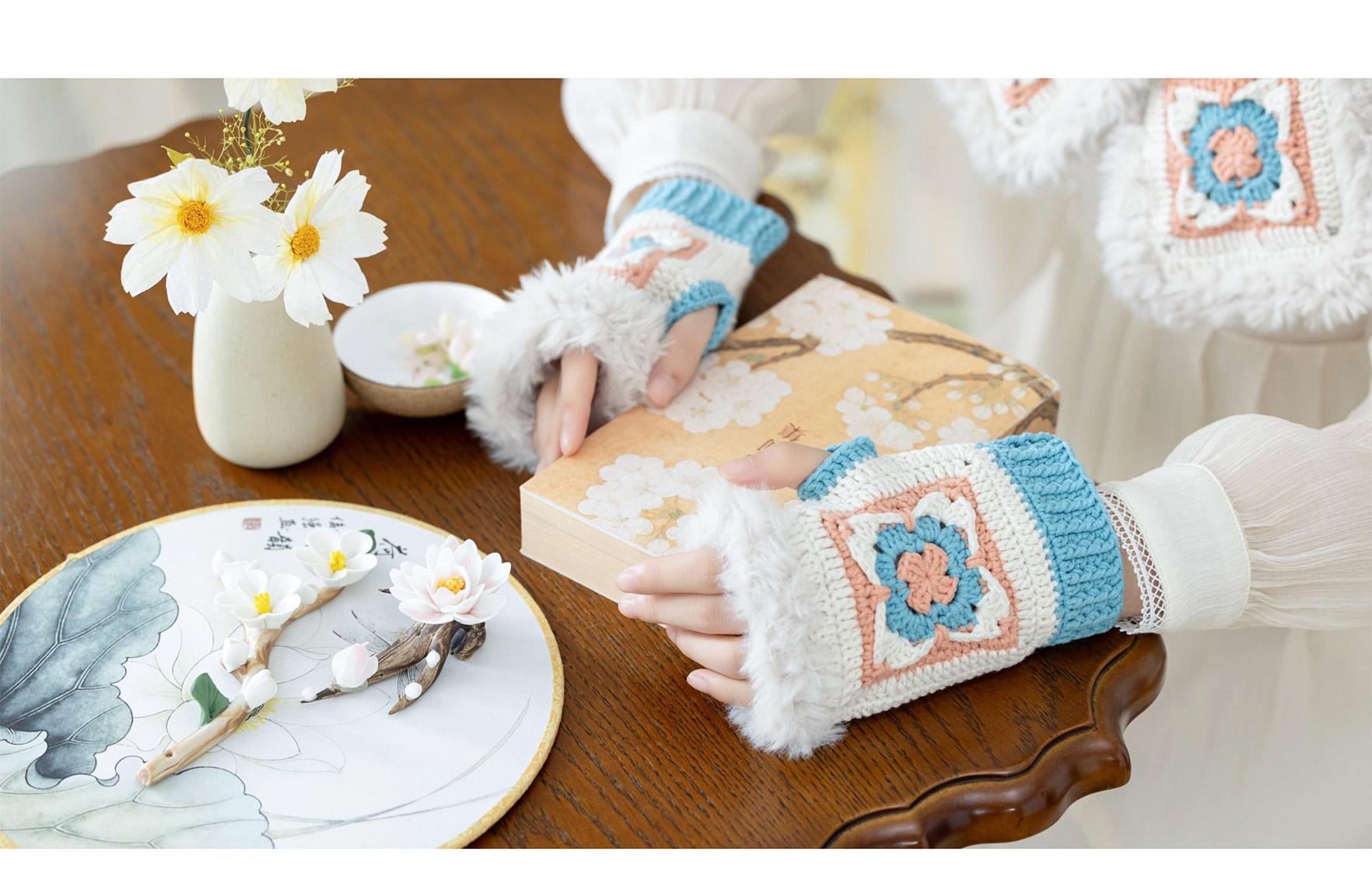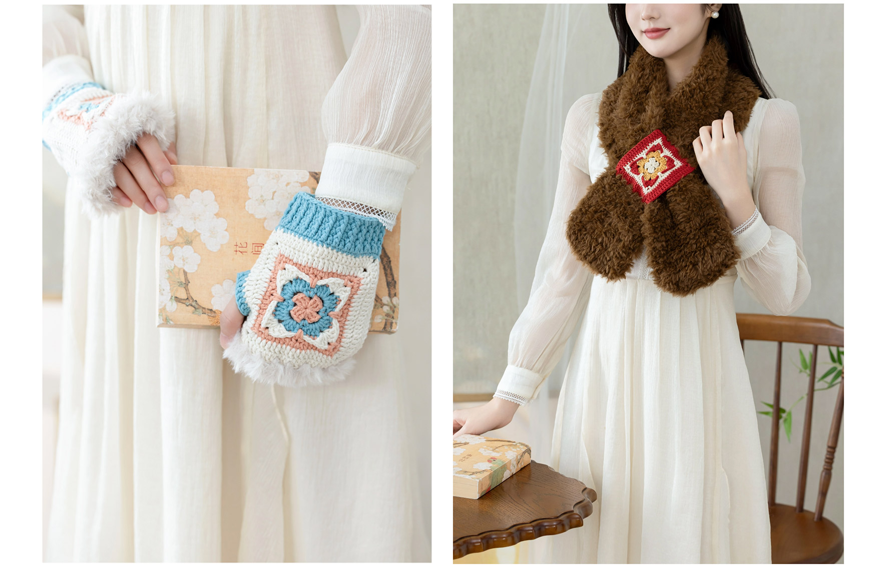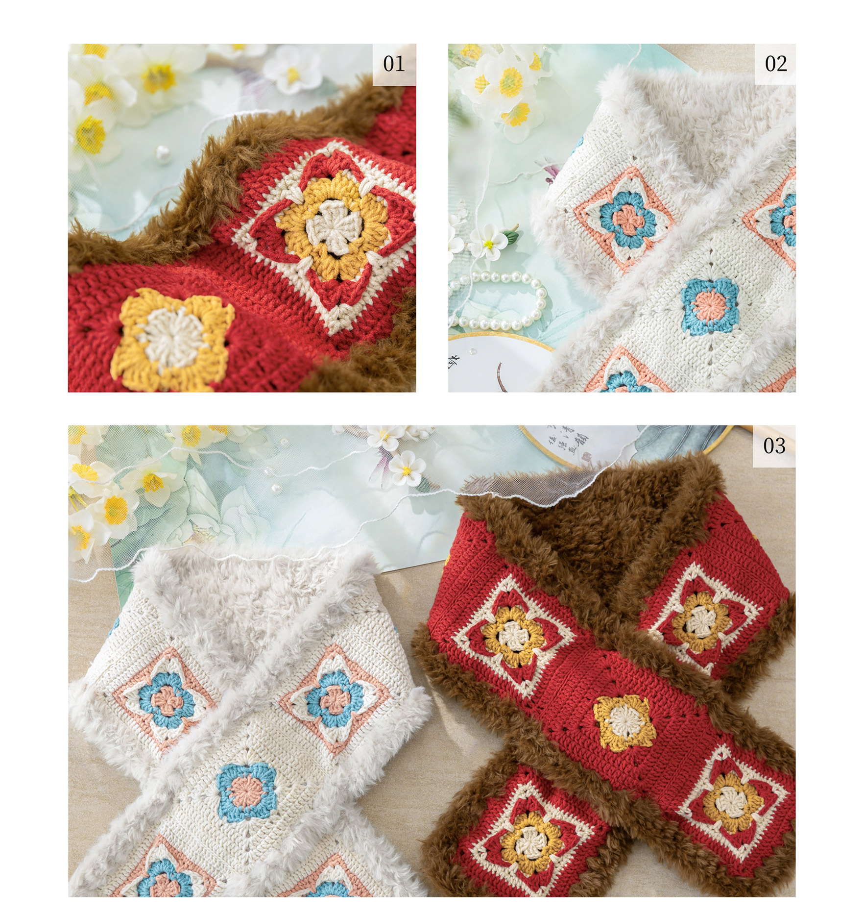 苏苏姐家织锦围脖手套套装手工diy钩针编织围巾毛线团冬季材料包