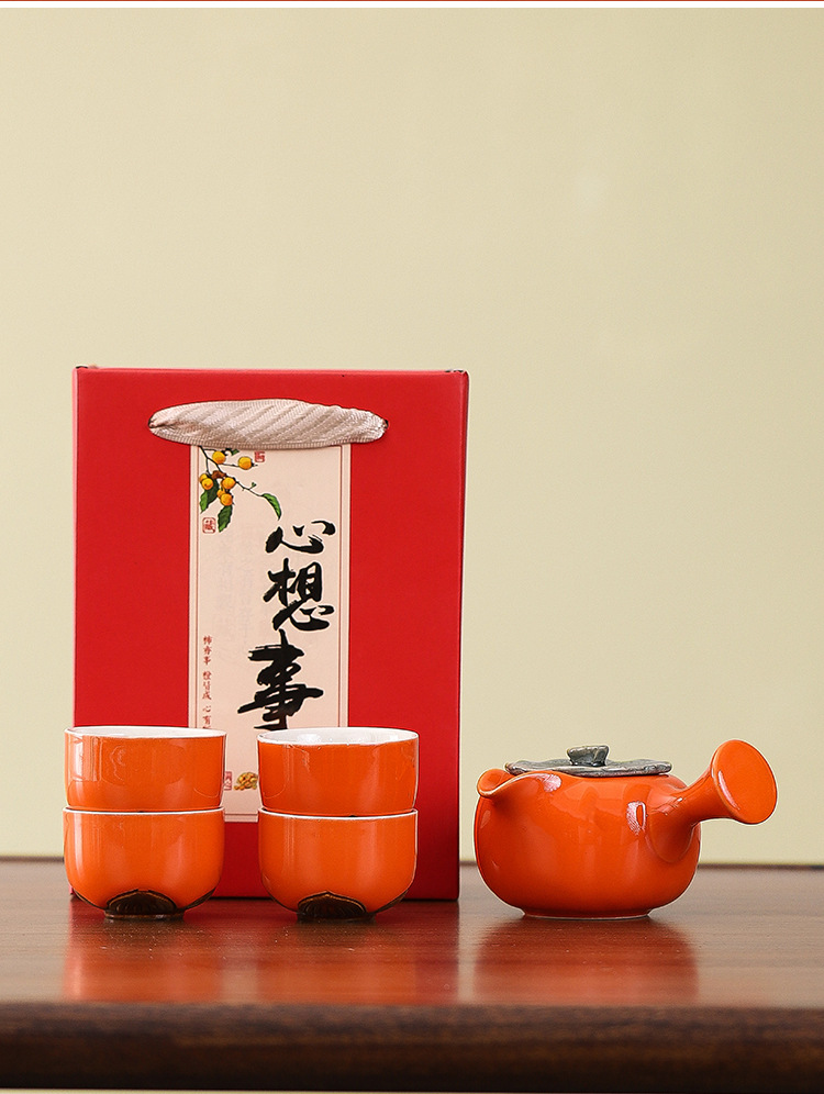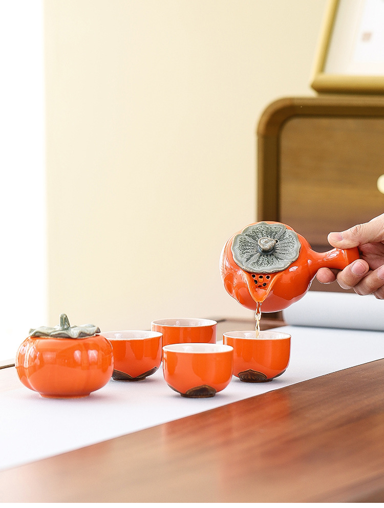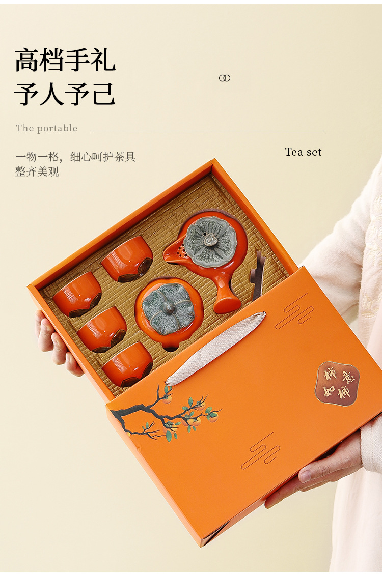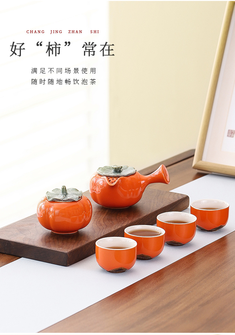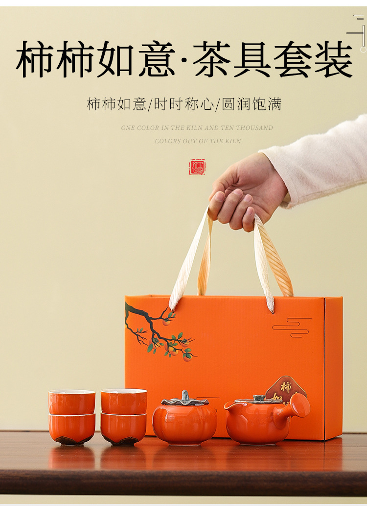 【好柿发生❗️柿柿如意茶具套装】时时称心,事事如意,好运连连!新年马年礼品创意柿子茶壶茶杯陶瓷茶具伴手礼开业活动小礼品中秋
