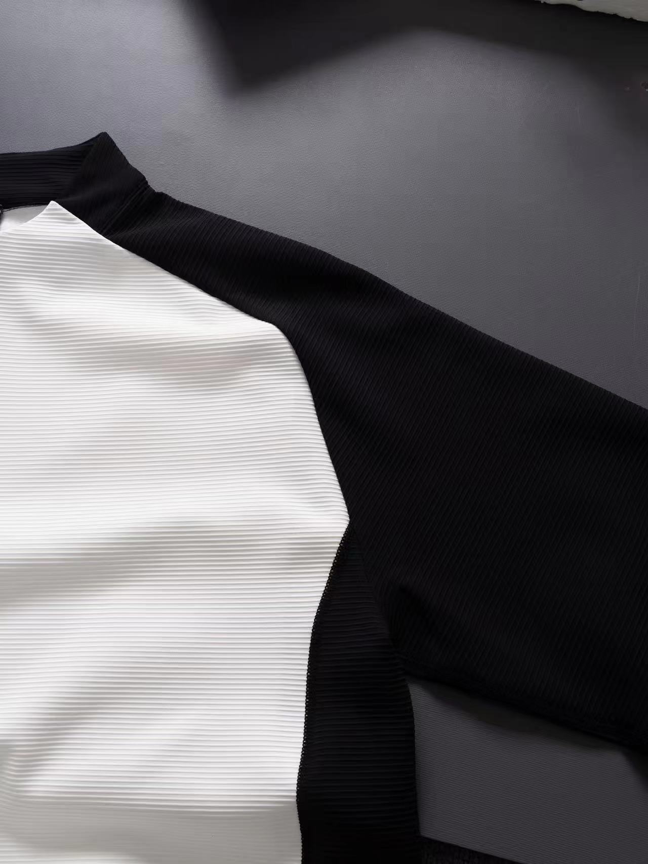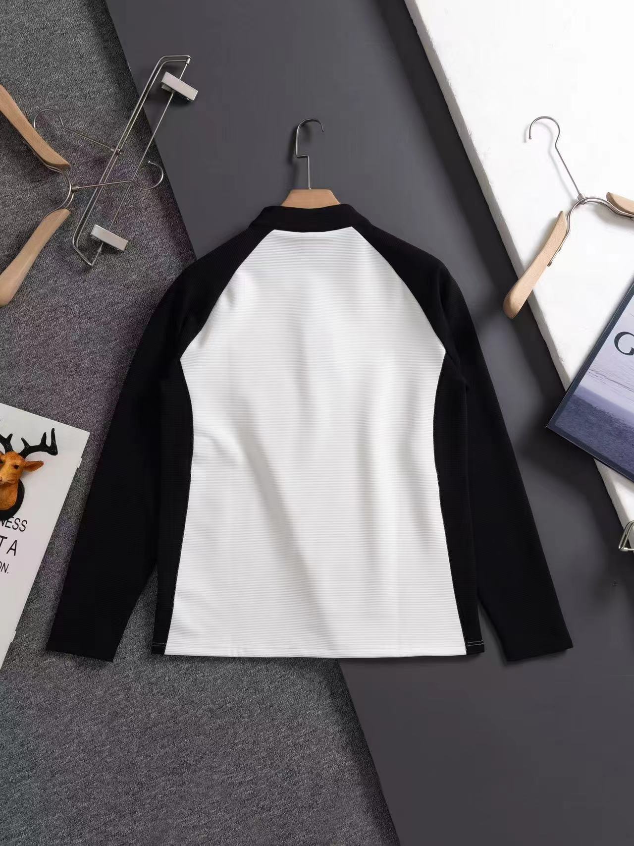 半拉链打底衫、田径体育生速干训练服跑步健身运动弹力打底,螺纹半拉链长袖定制 螺纹半拉链设计,常规版型 三标齐全 采用定制柔软面料 触感细腻 全身拼接撞色设计,上身挺阔有型