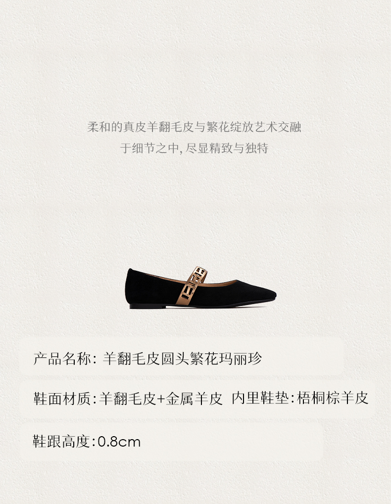 heelz设计师鞋履 | 羊反绒圆头繁花玛丽珍0.8公分