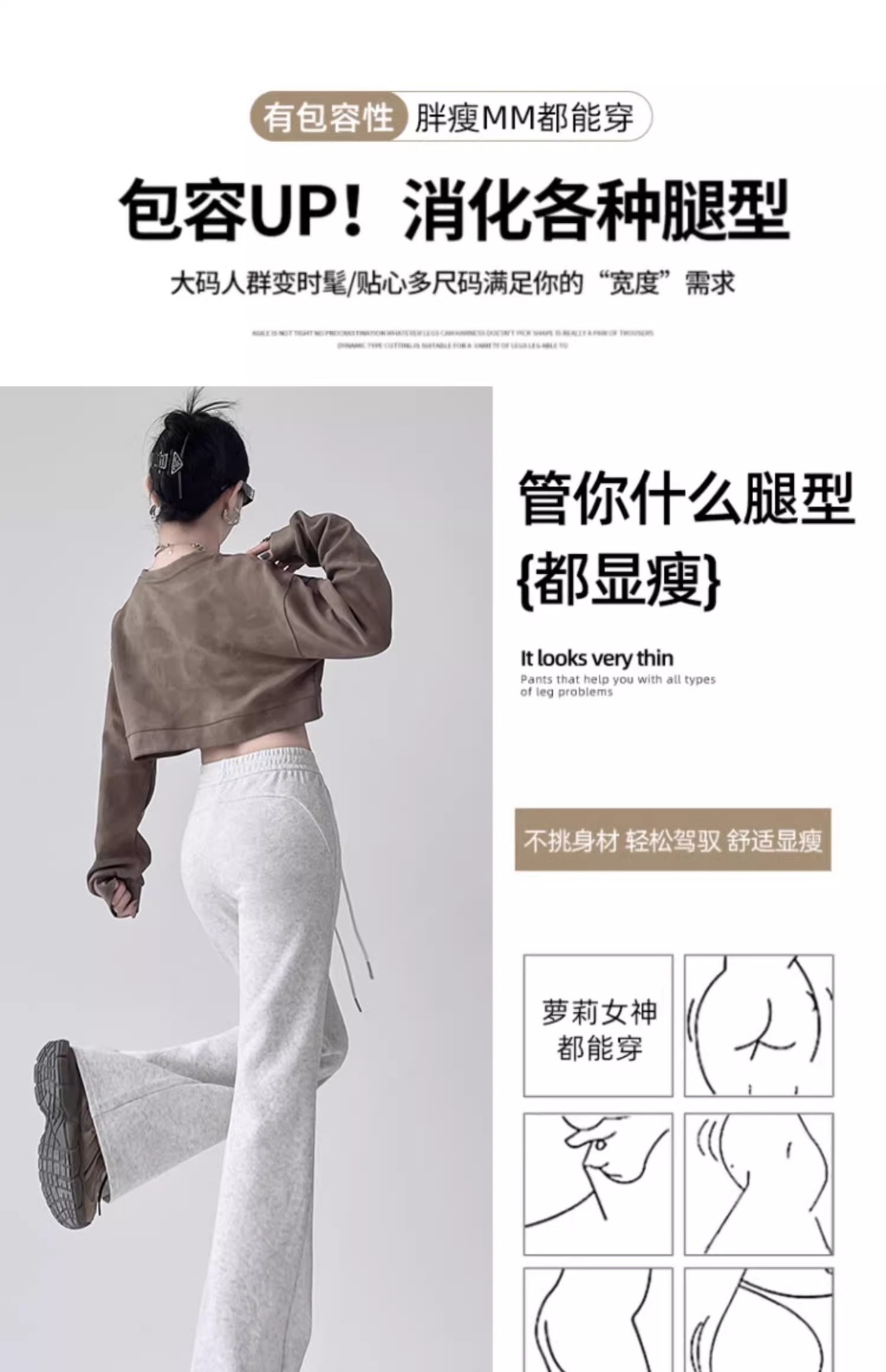 春秋季微喇运动裤女2025年新款高腰显瘦马蹄裤小个子女显腿长