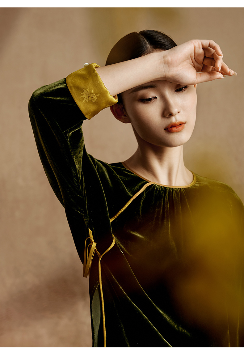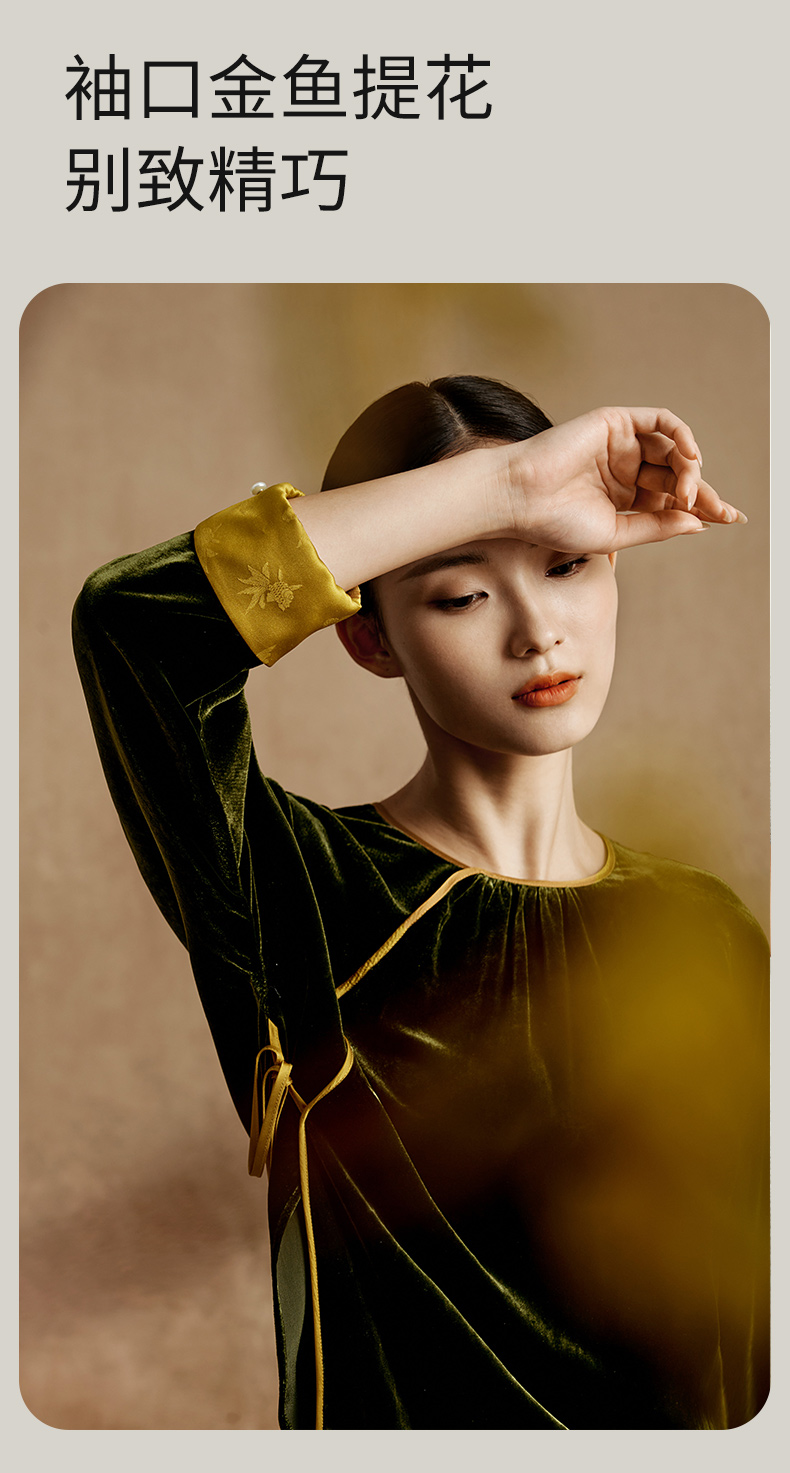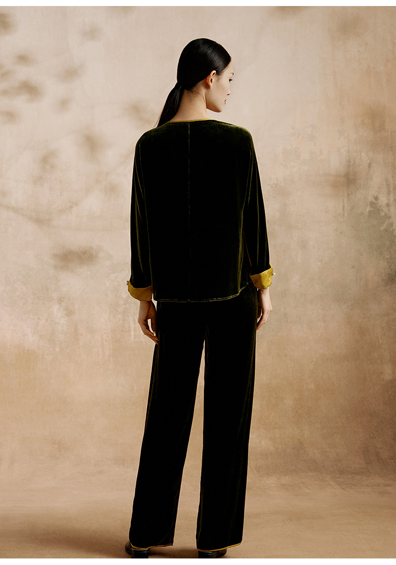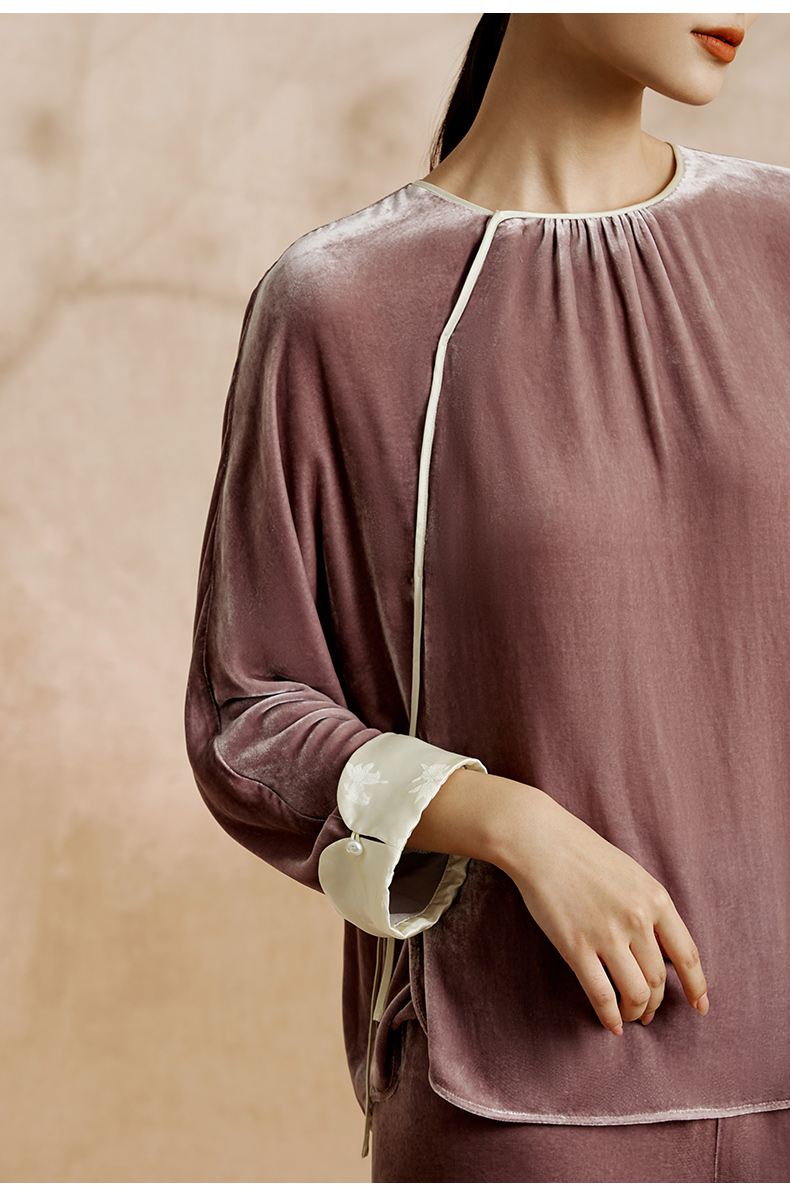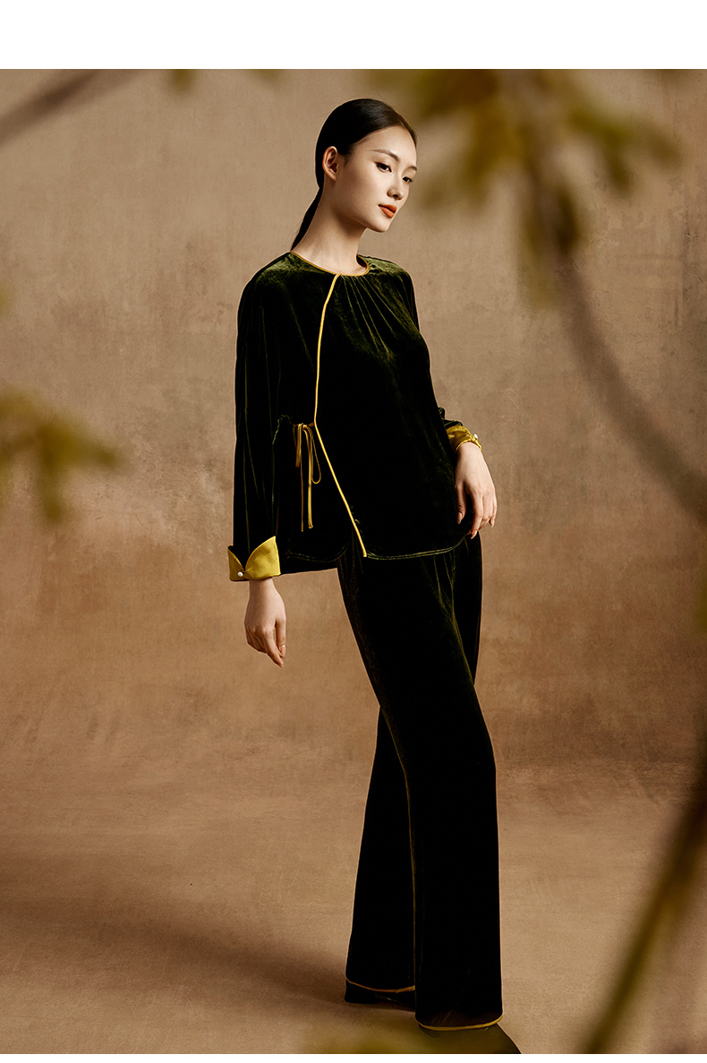 【自带高光桑蚕丝丝绒】新中式睡衣女优雅斜襟衣裤套家居服金三塔(限价款) YSFEC208