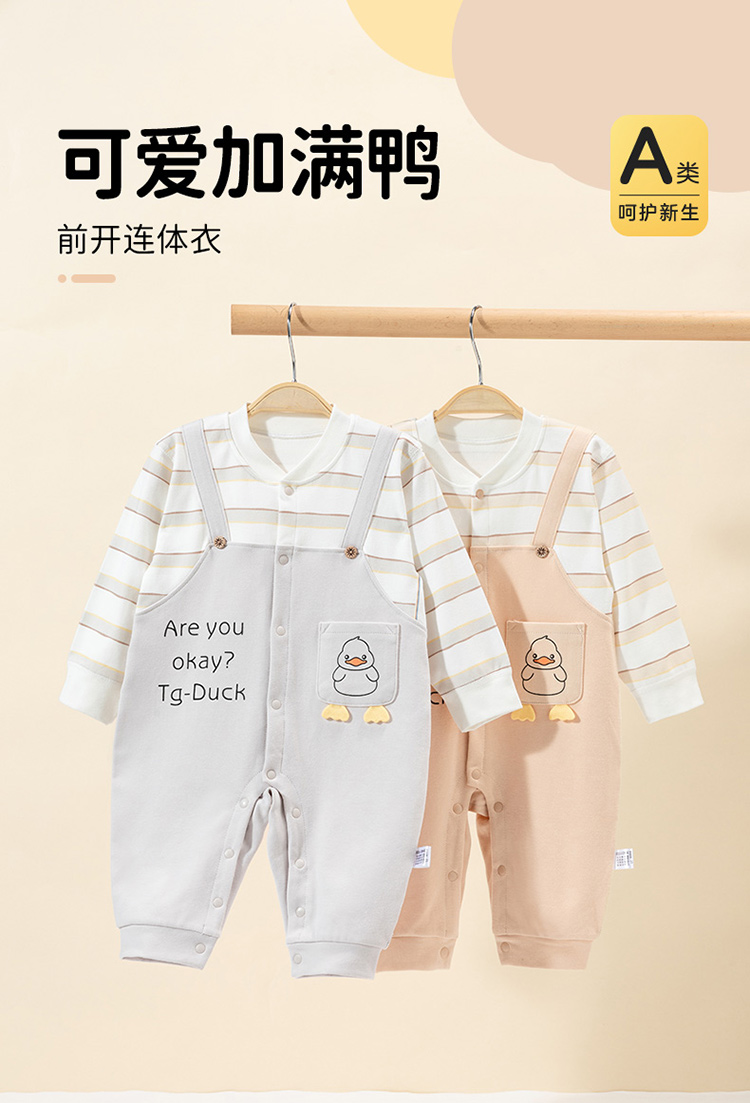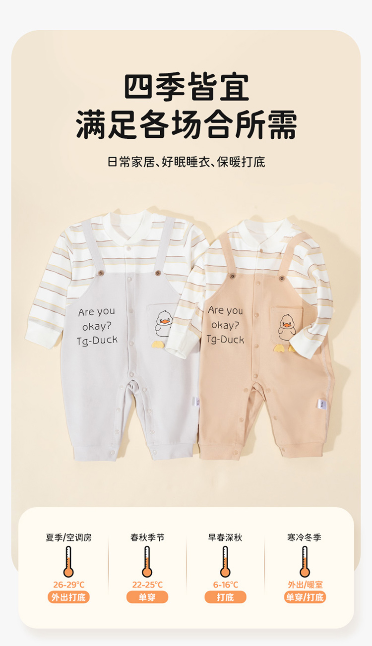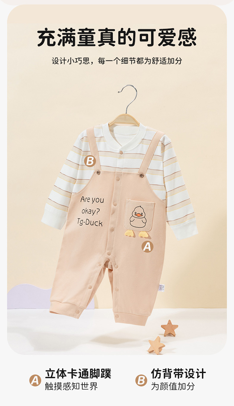 贝贝怡婴幼儿童前开连体衣舒适纯棉假两件背带哈衣春秋季单穿打底ZB3DL013