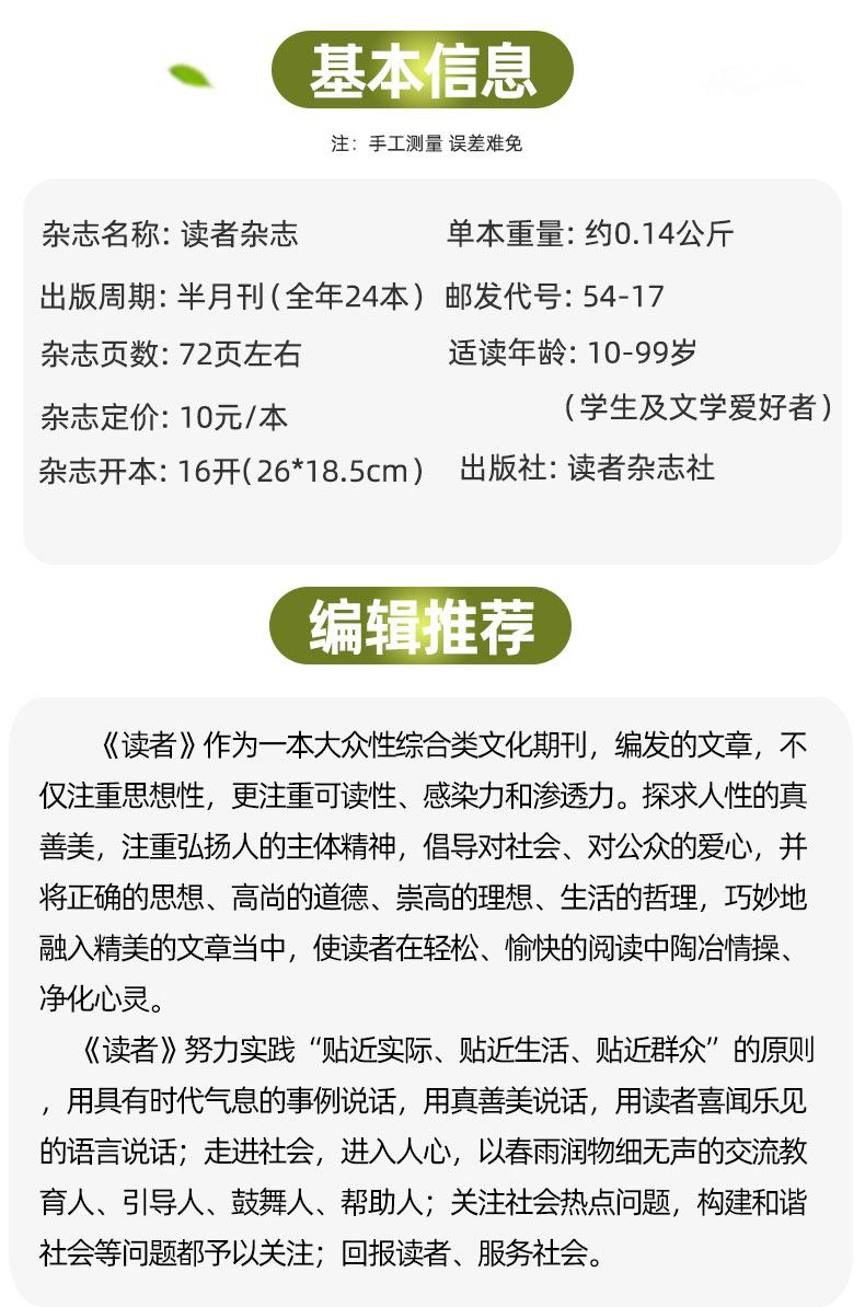 【全年订阅】读者杂志2026年全年共24期【博采中外、荟萃精华、启迪思想、开阔眼界,大众性综合类文化期刊】