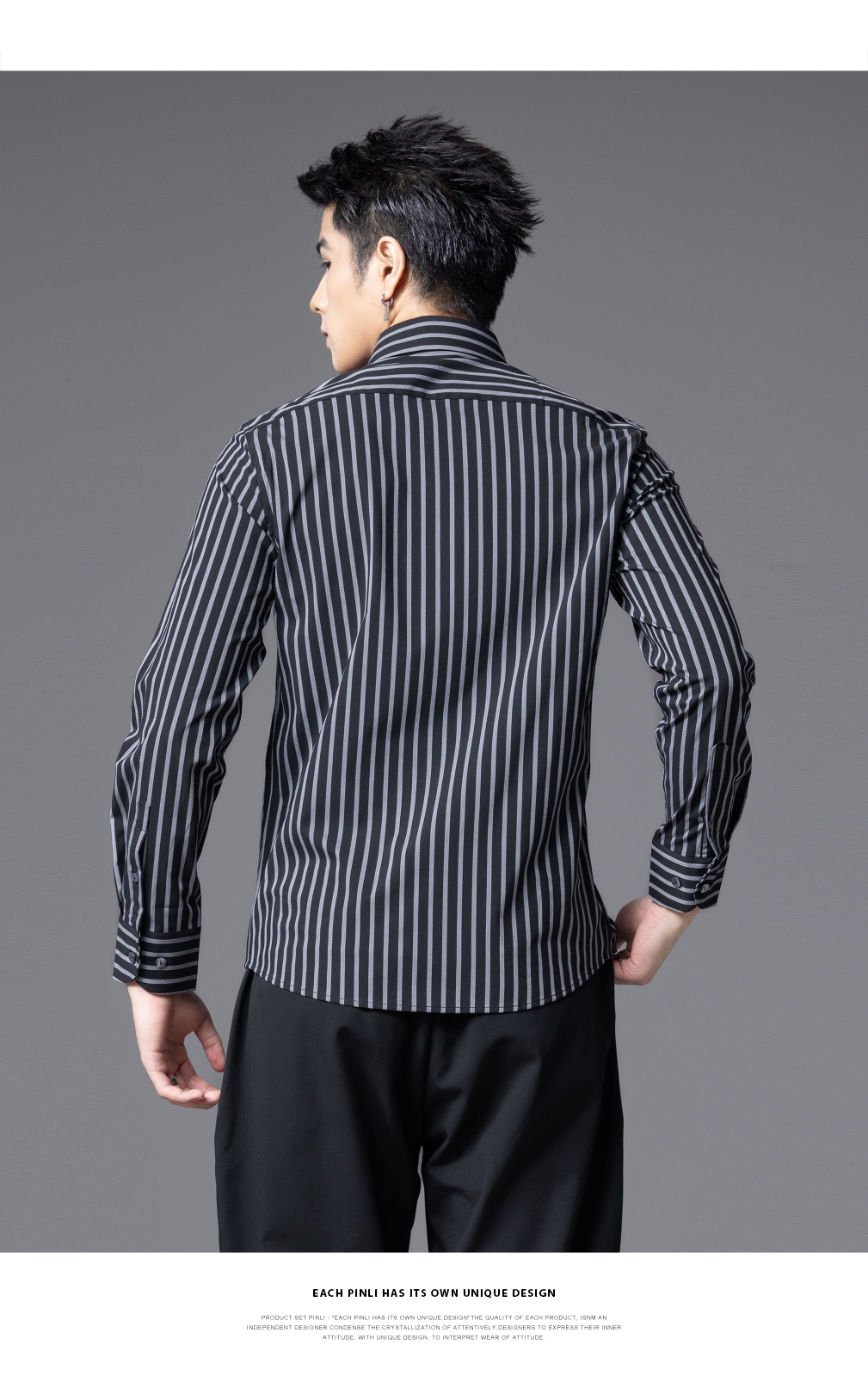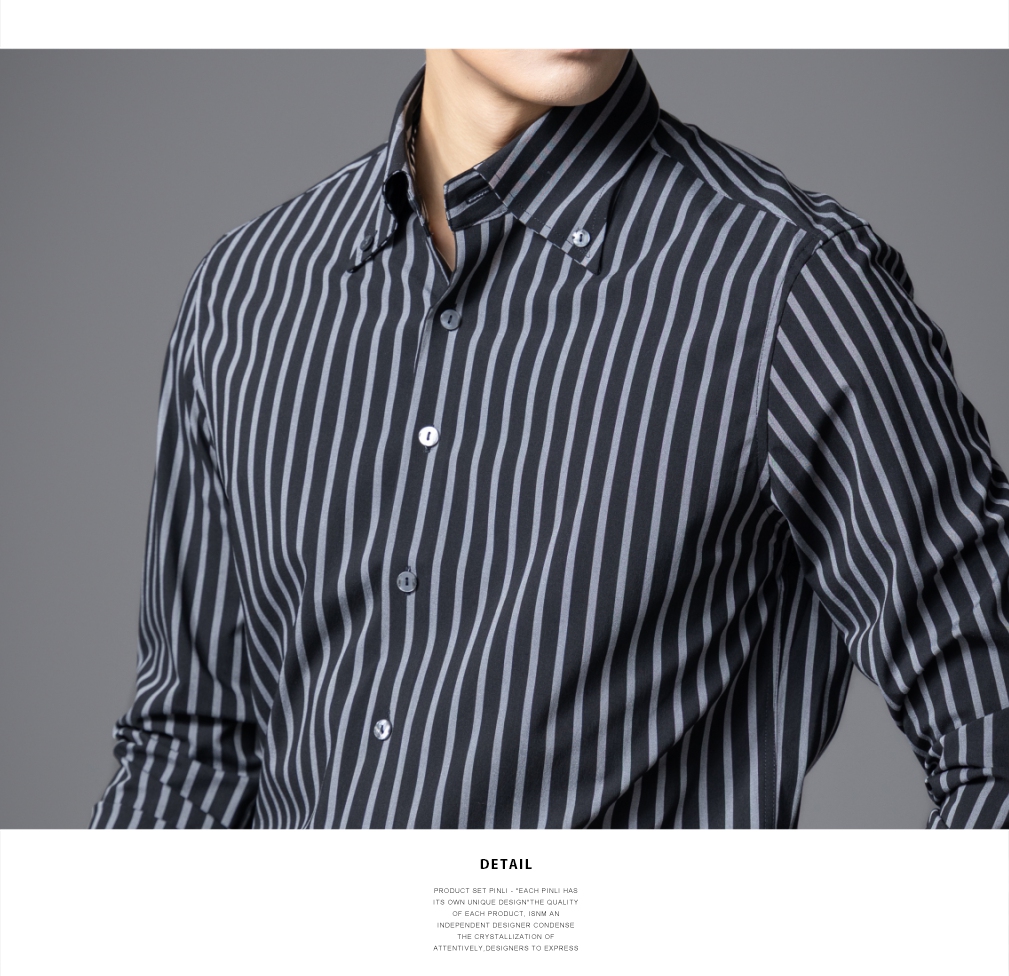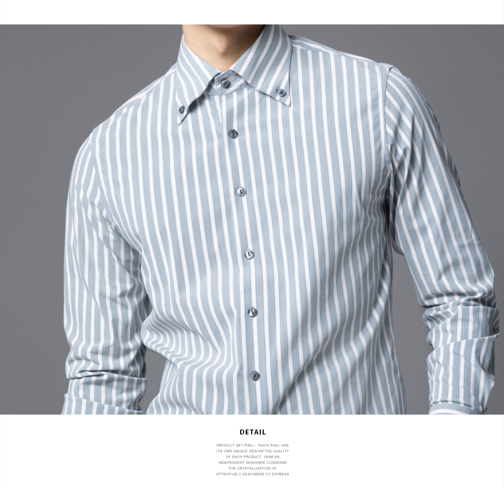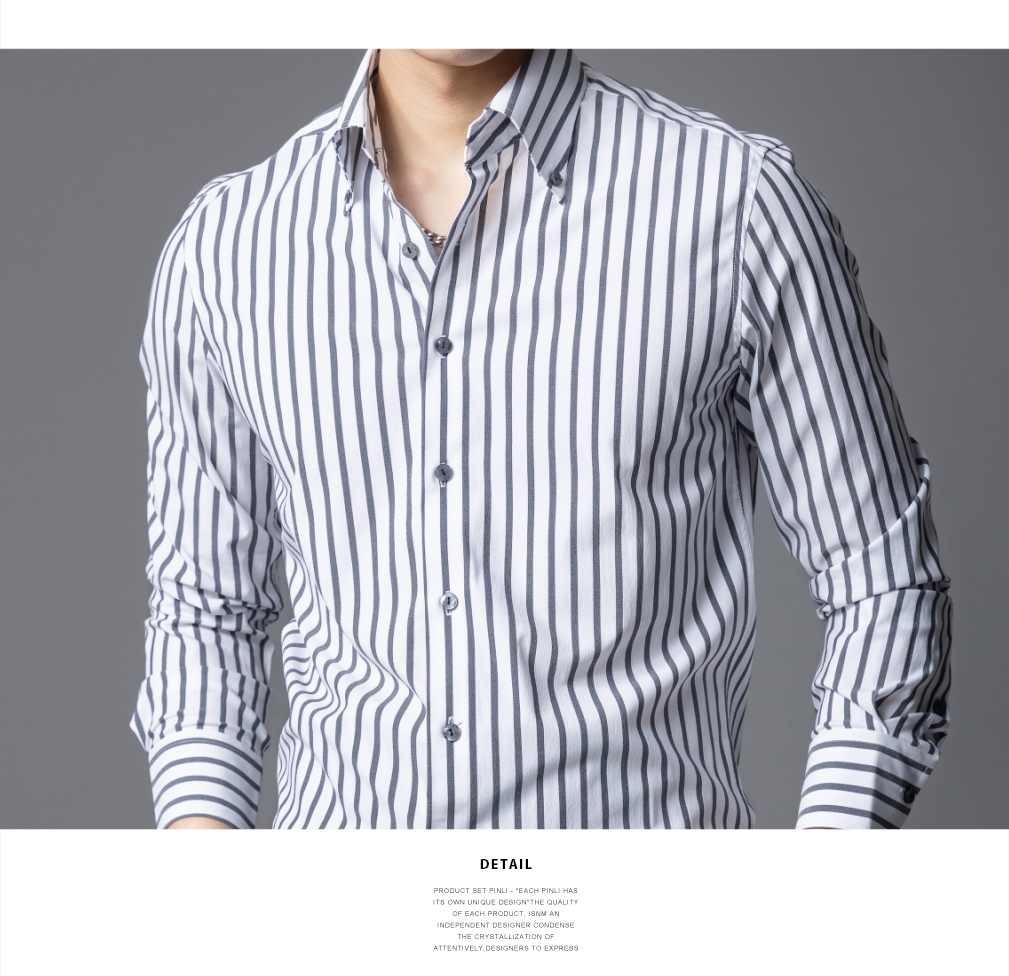 PINLI品立2025秋季新款商务条纹修身衬衣男士高级感免烫长袖衬衫GD253113048
