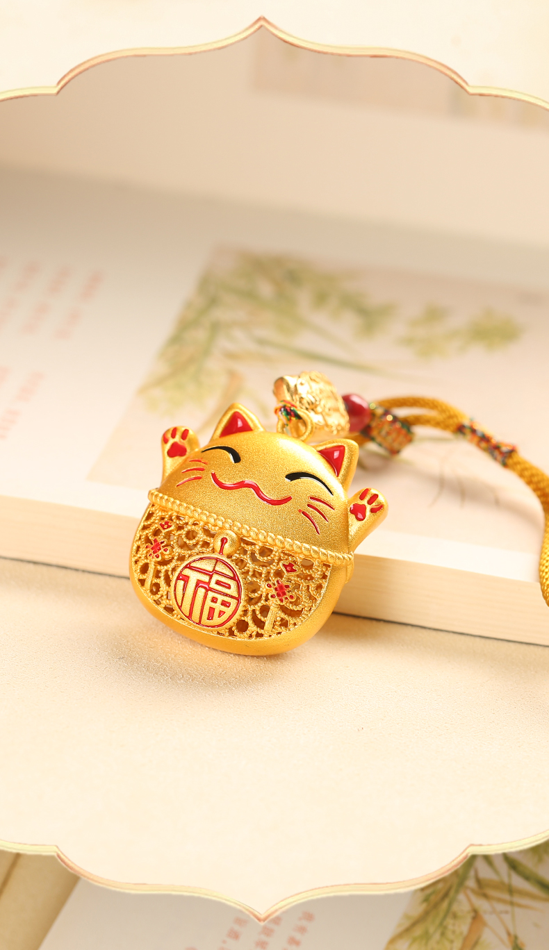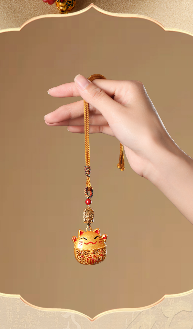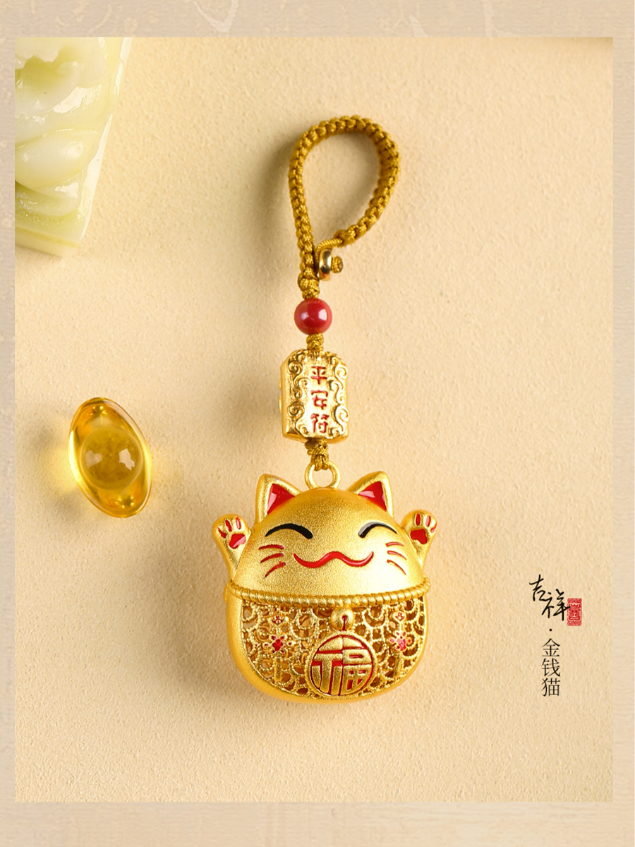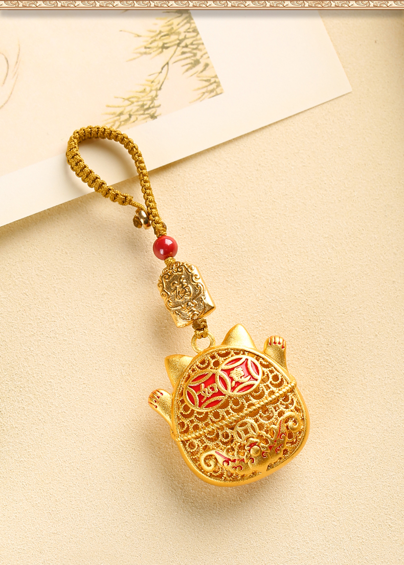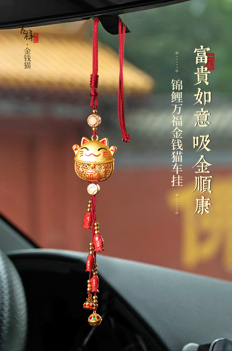 【喵喵万福】灵机锦鲤金钱猫挂饰 镂空雕花车挂挂件钥匙扣