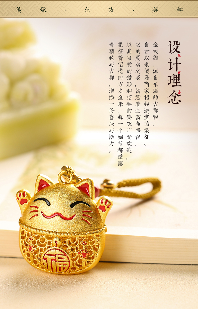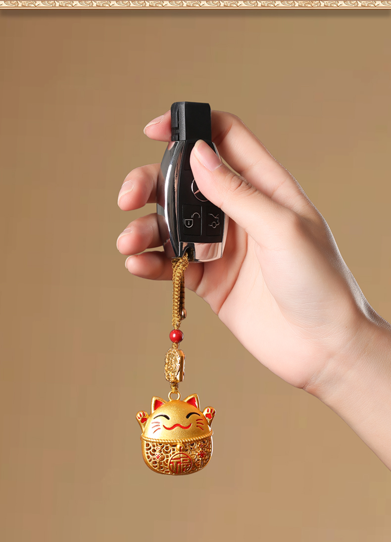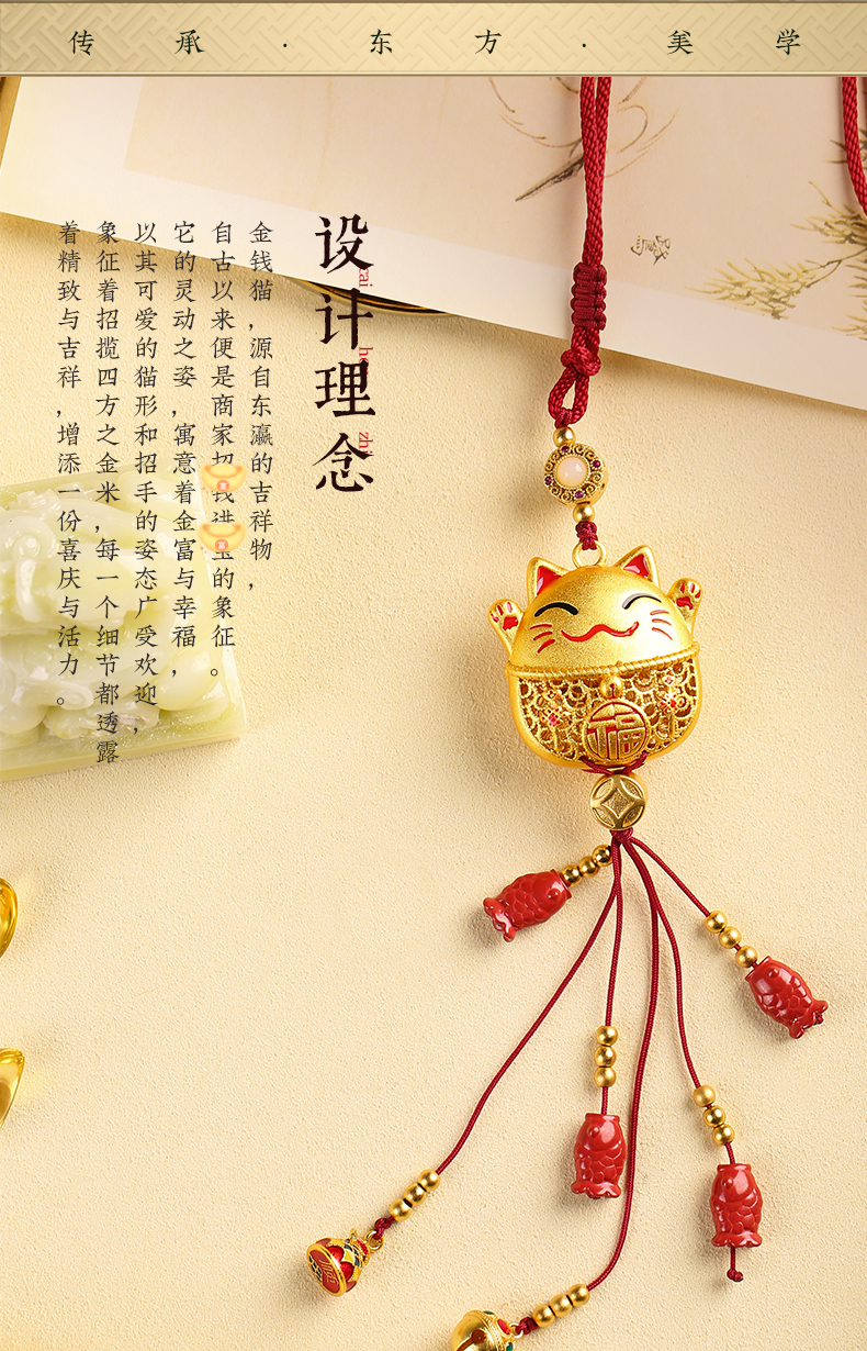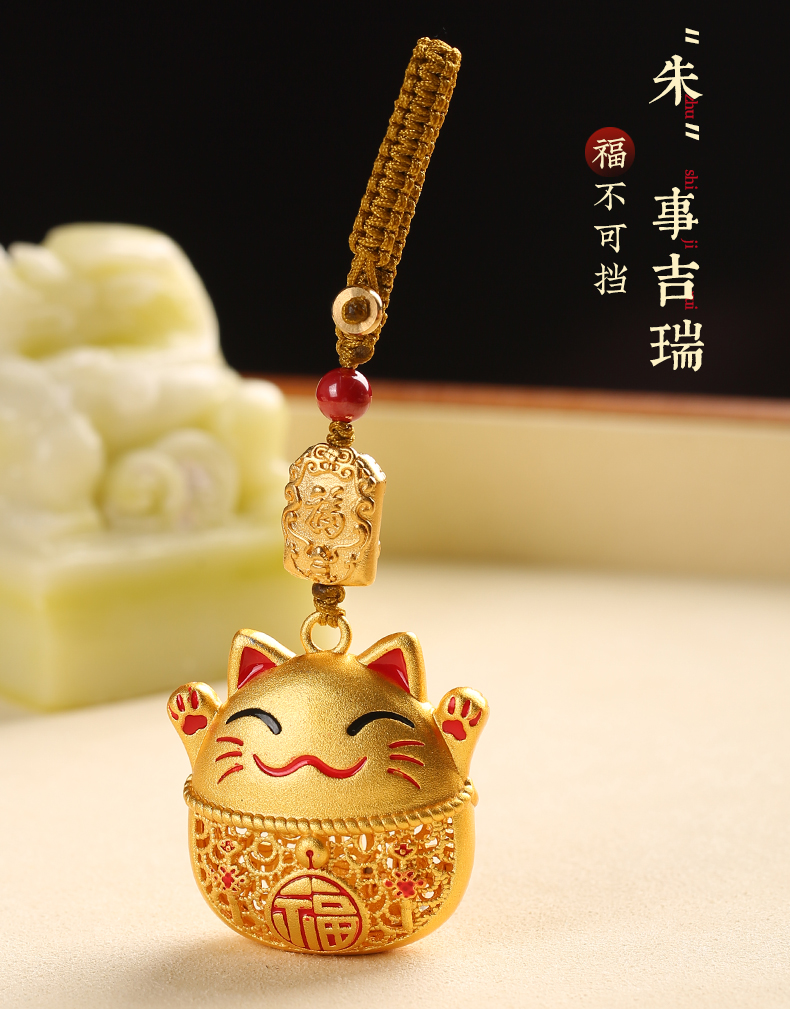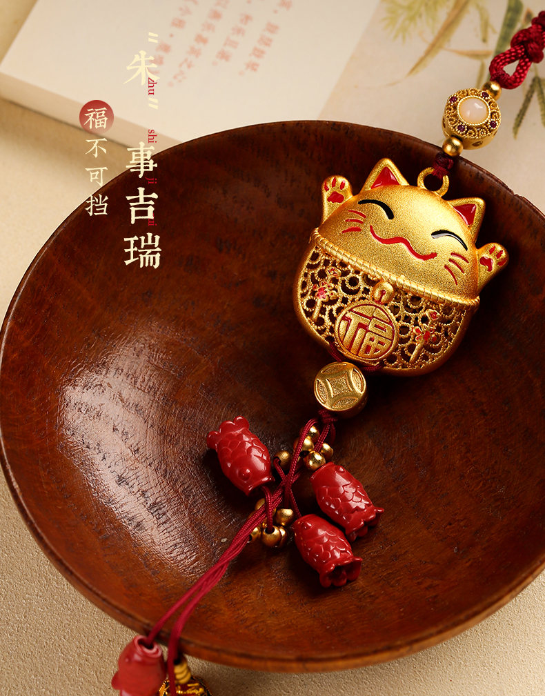 【喵喵万福】灵机锦鲤金钱猫挂饰 镂空雕花车挂挂件钥匙扣