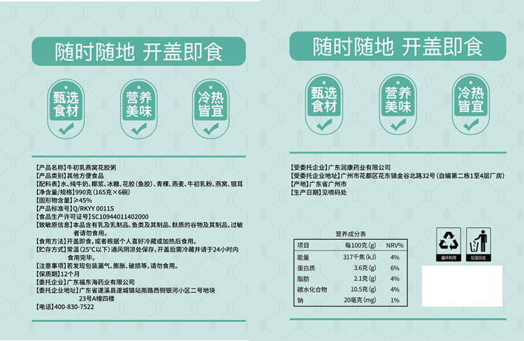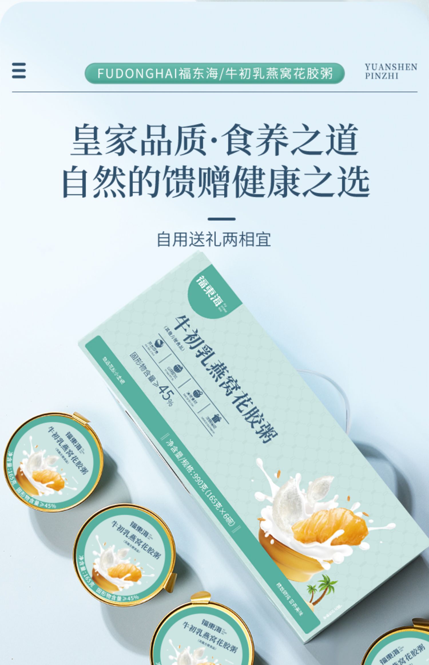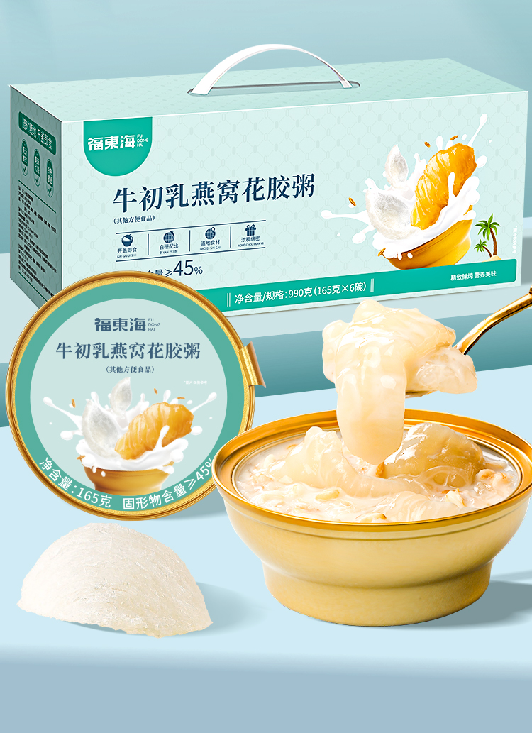 福东海 牛初乳燕窝花胶粥990克(165克x6)/盒