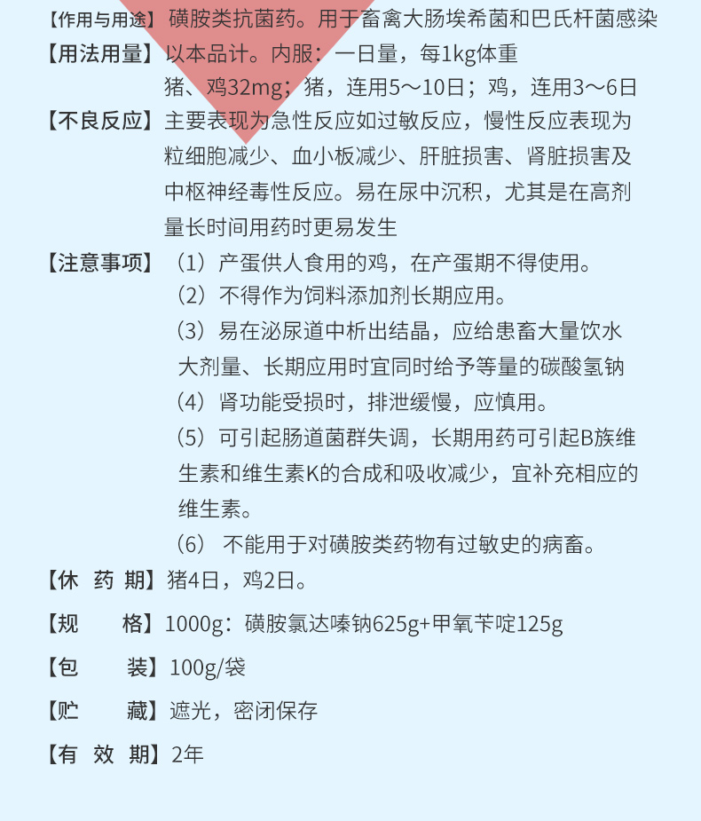 华畜兽药 复方磺胺氯达嗪钠粉 兽用猪鸡球虫药便血弓形体三字球虫粉