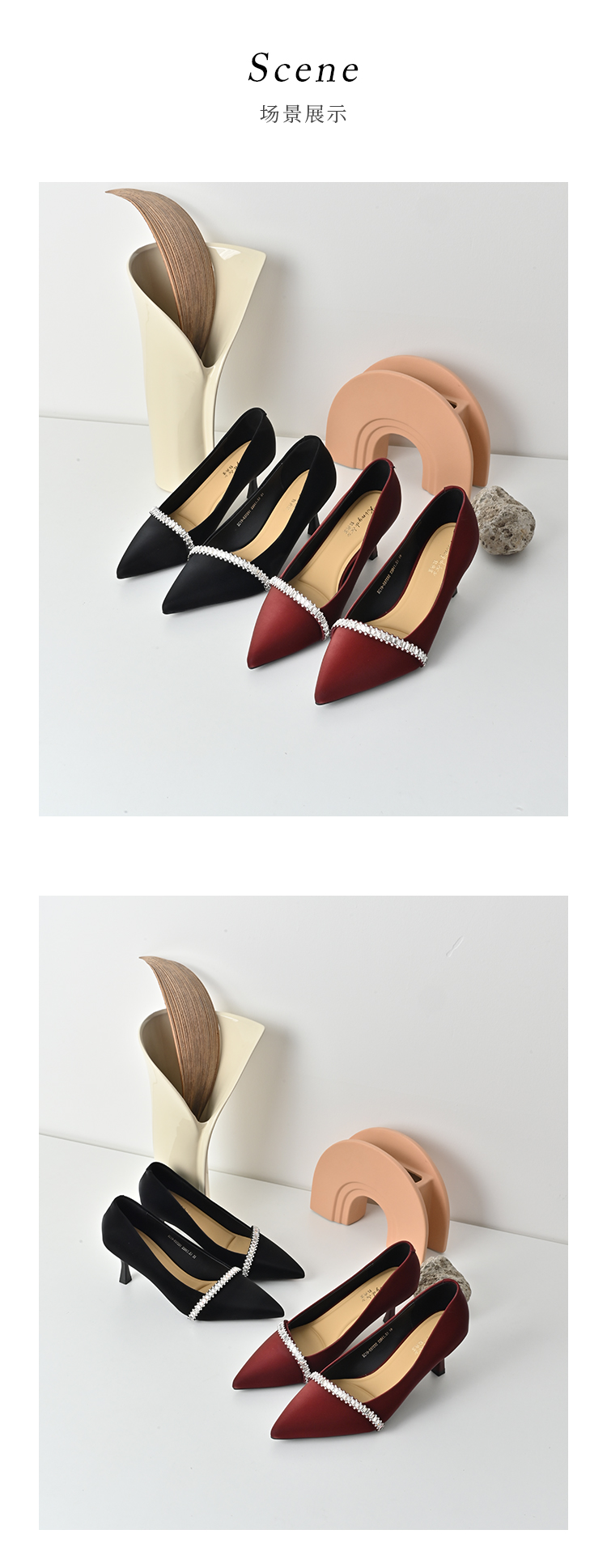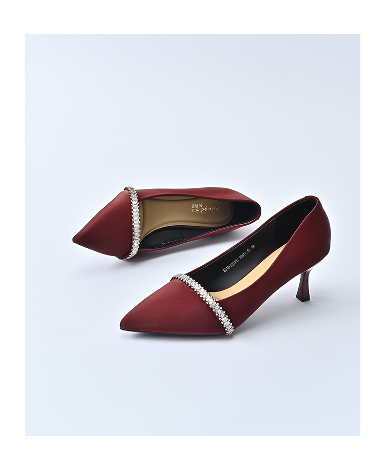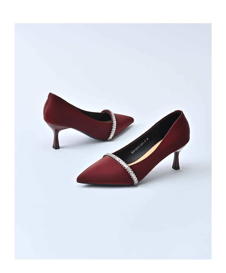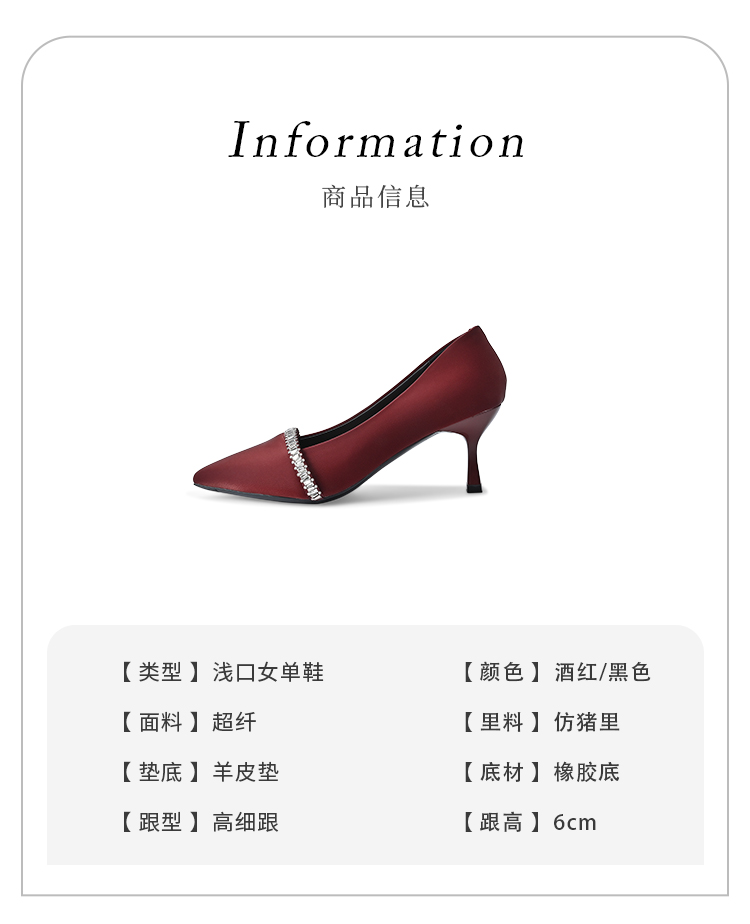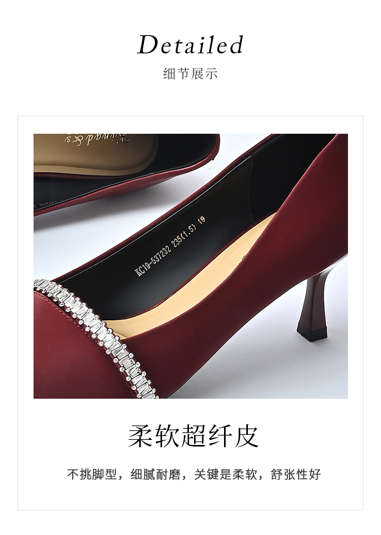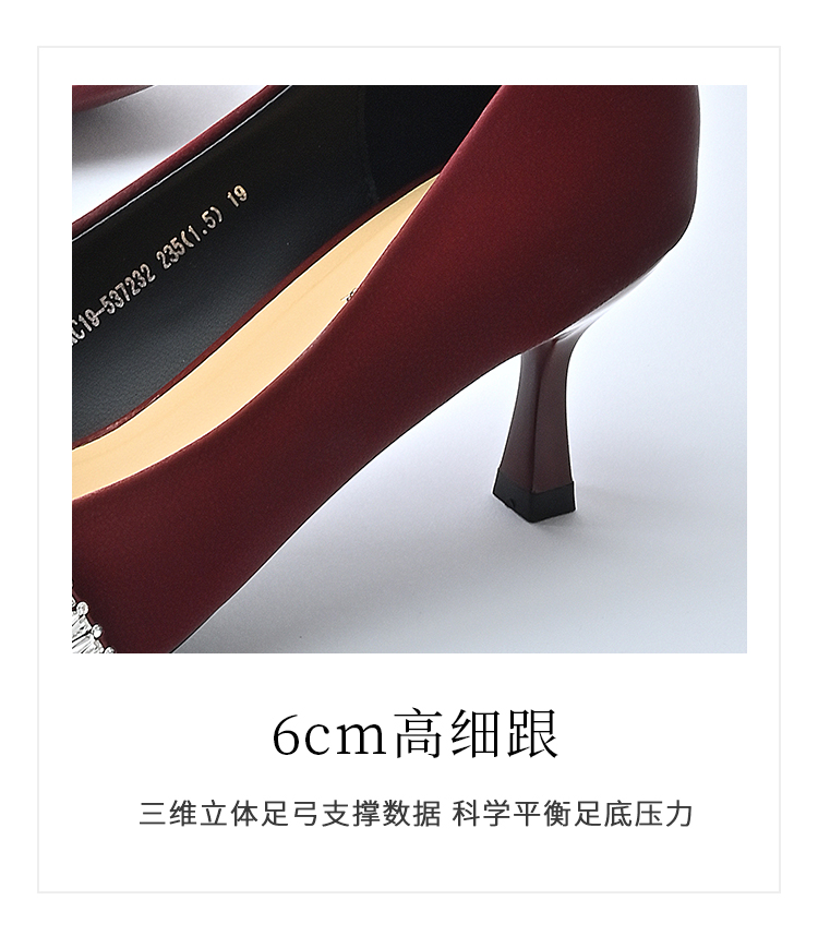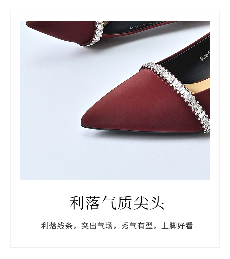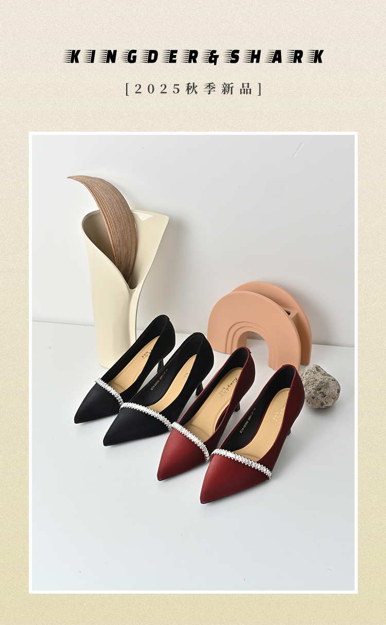 经典鲨女鞋2025年秋专柜新品优雅尖头6cm浅口一脚蹬高跟鞋婚鞋KC19-537231