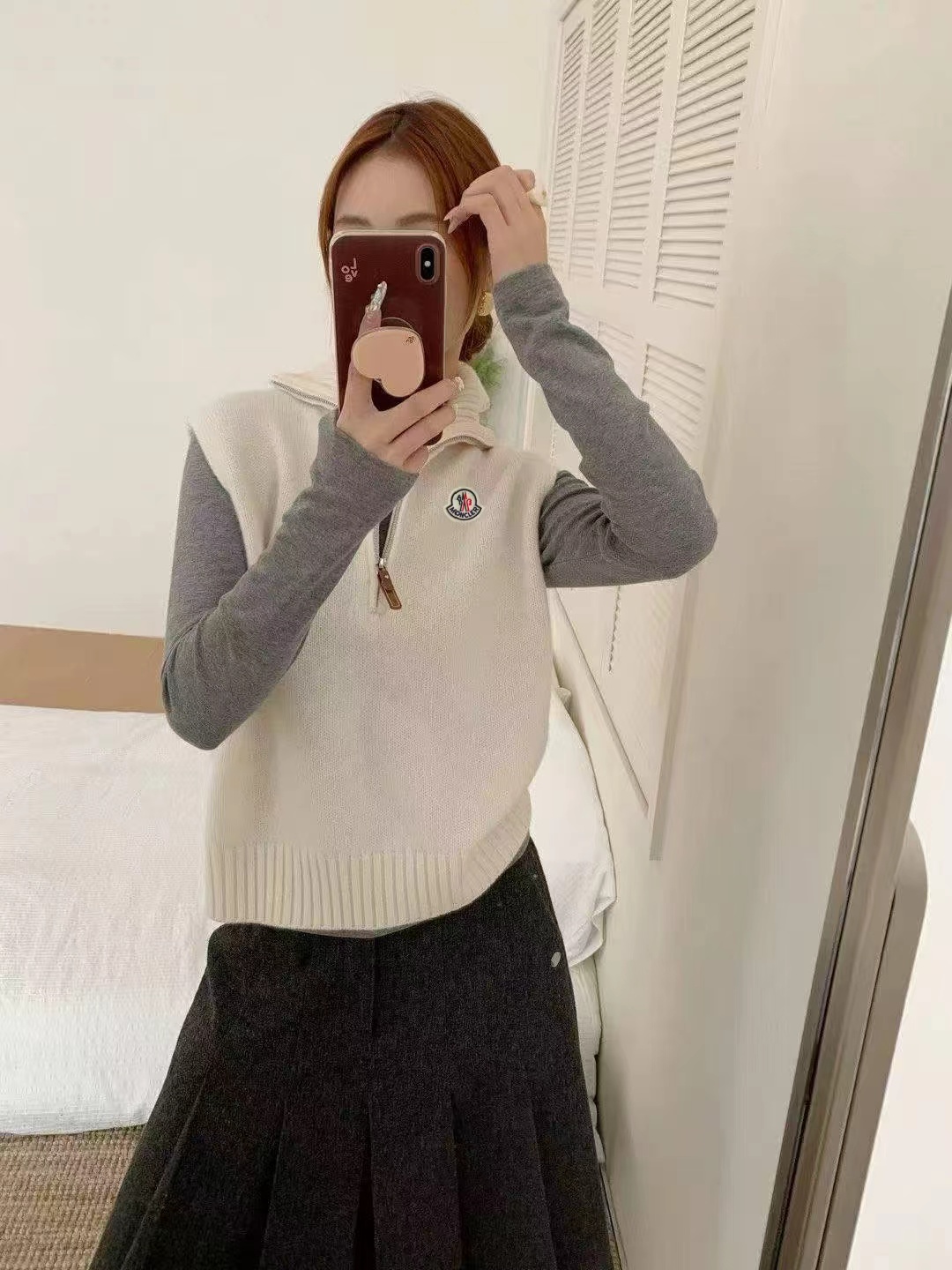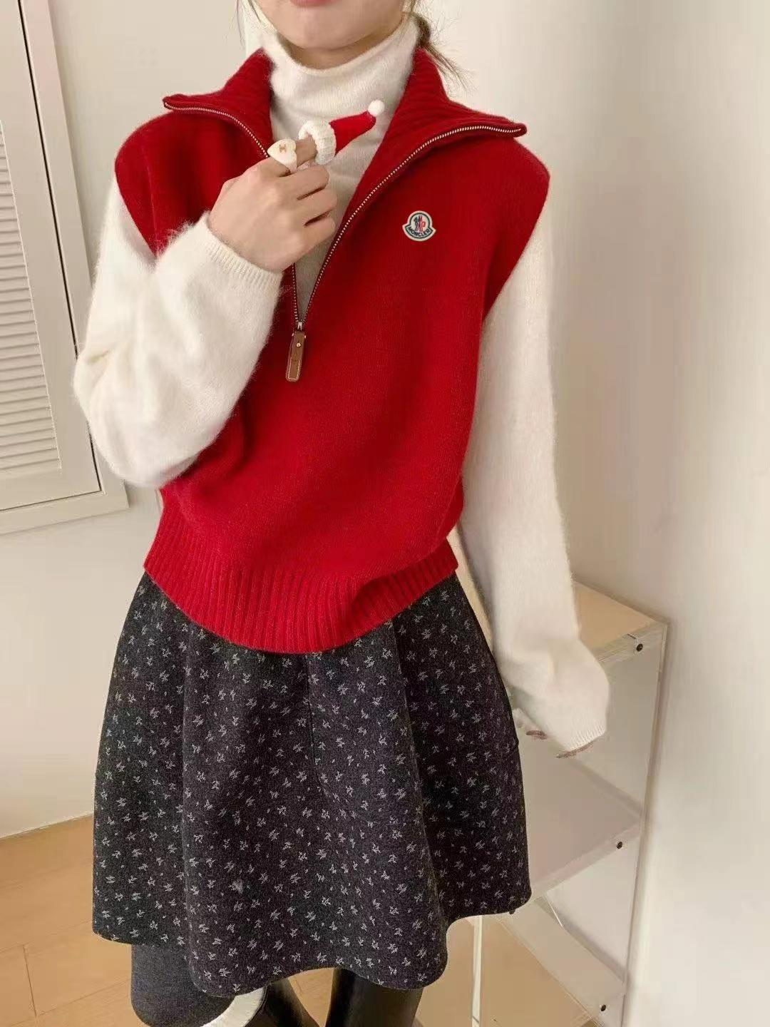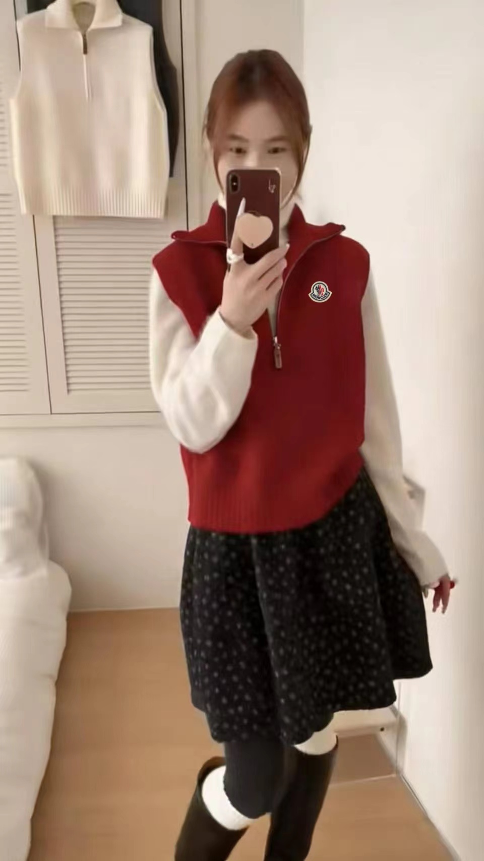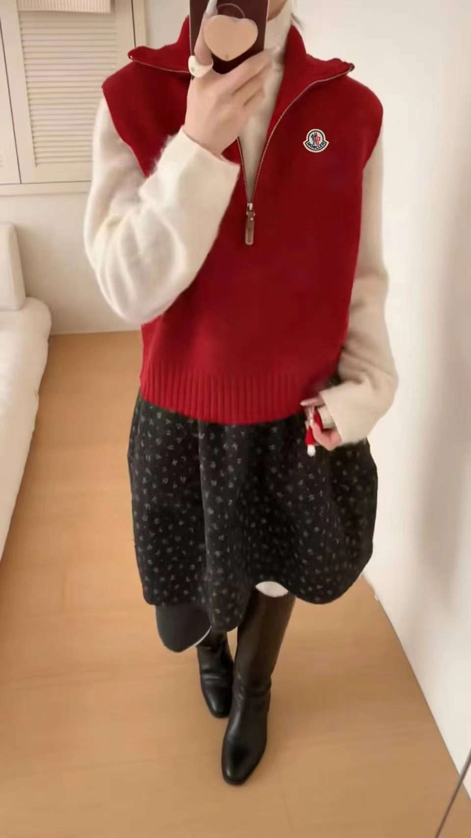 26SS针织背心高领半拉链的设计羔级感调性太拿捏人心啦~冬天穿正肩的或者修身一些的外套怕胳膊鼓鼓囊囊的或者不舒服的这种无袖背心bi入!短衣身的宽松廓形150斤穿上空间都不局促大身平针织法纹理细腻平整有质感深灰色的纱线粘毛也看不出来比黑色更好打理~双层大高领设计立体有型!!领口的廓度比普通高领大很多穿上不会紧箍在脖子上把脸显的小小的修饰脖子线条!羊毛纱线面料有厚度手感丰满柔软保暖力在冬天也够用啦~而且接触皮肤不刺扎敏感肌可以了放心入手舒适度ji佳!