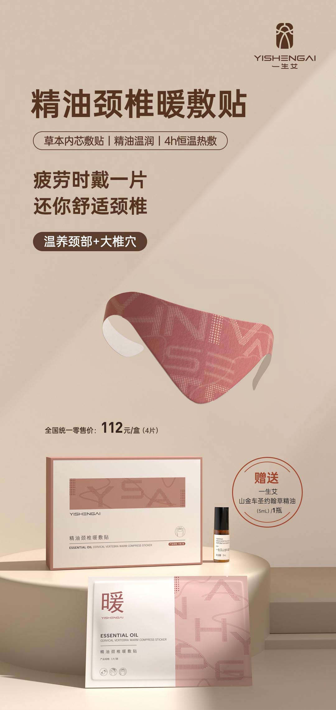 【精油颈椎暖敷贴】(4片/盒,赠5ML山金车圣约翰草精油)下单后3—5个工作日发货| 下单前联系客服:cxbc521领取福利