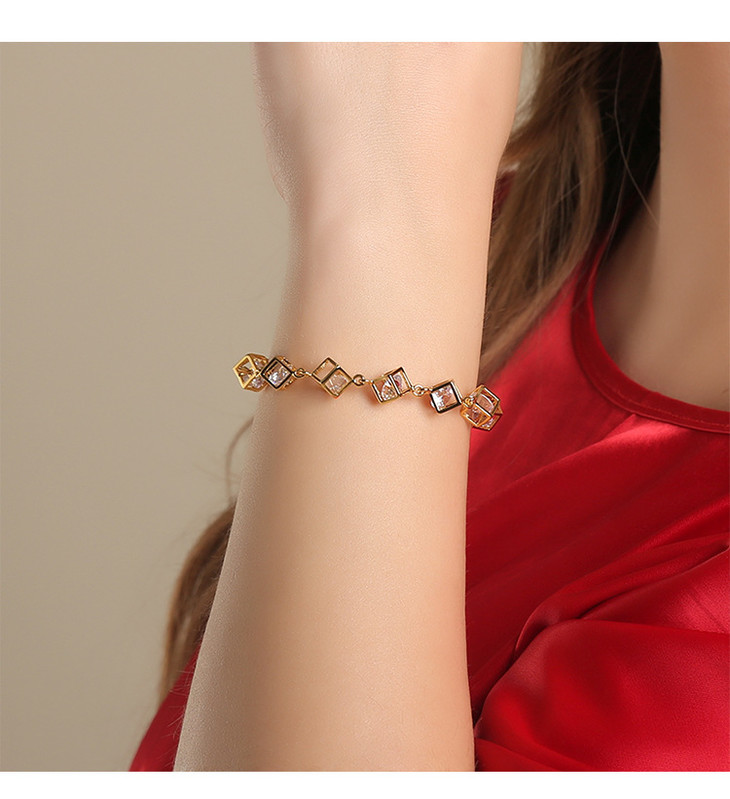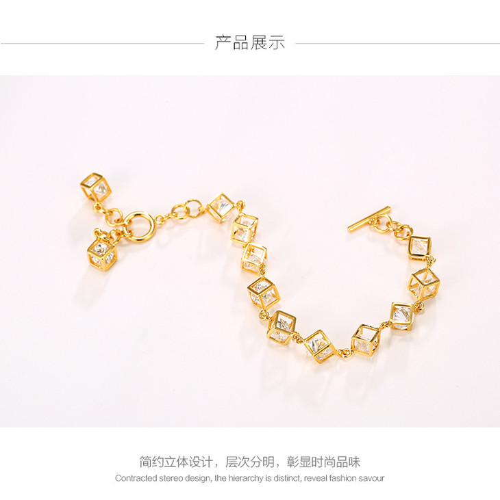 【k金手链】韩版仿黄金手链女 轻奢时尚幸福魔方手饰手链