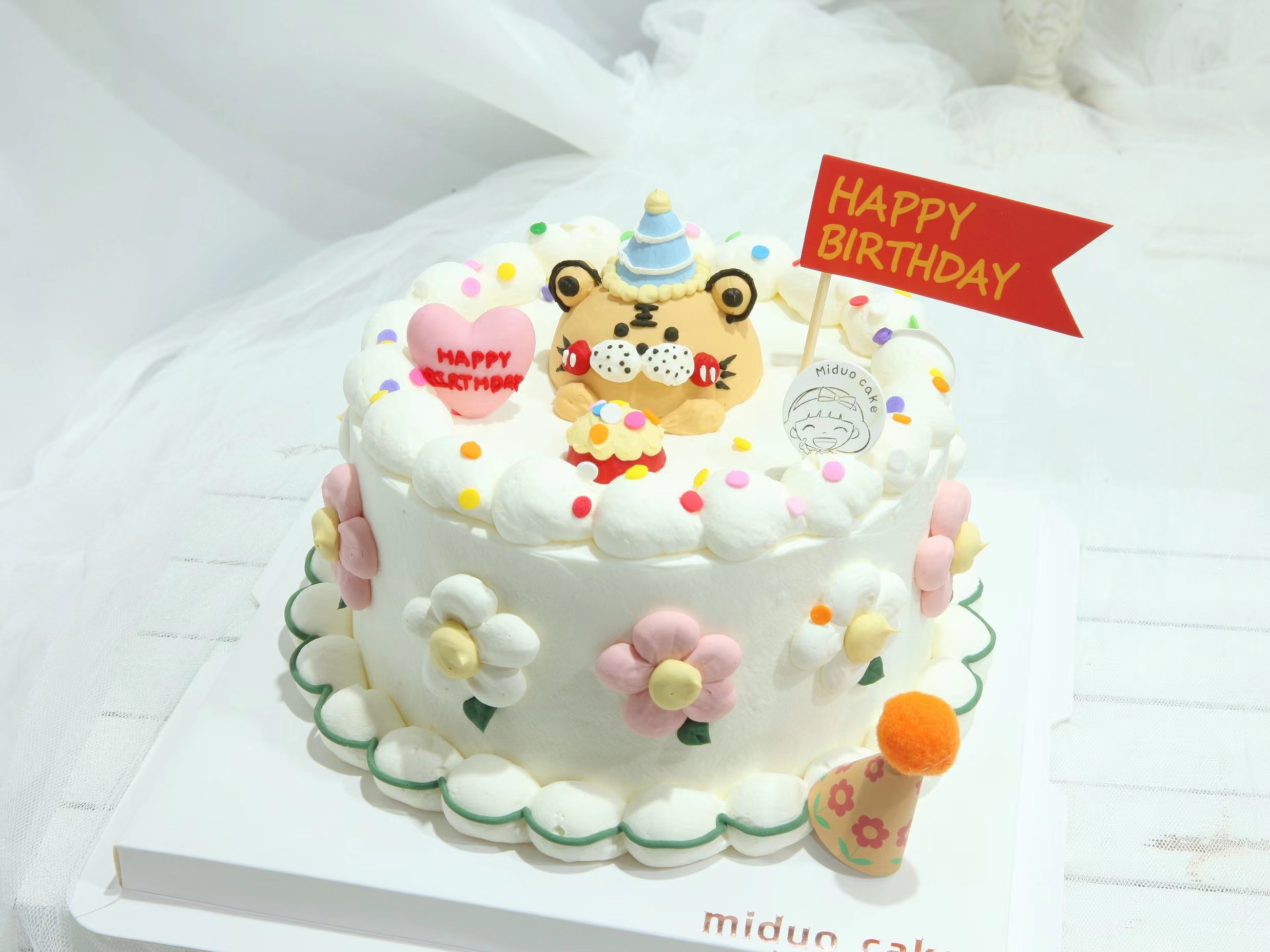 卡通主题款 立体小动物可爱小老虎 小花花 周岁 派对 男孩女孩造型蛋糕