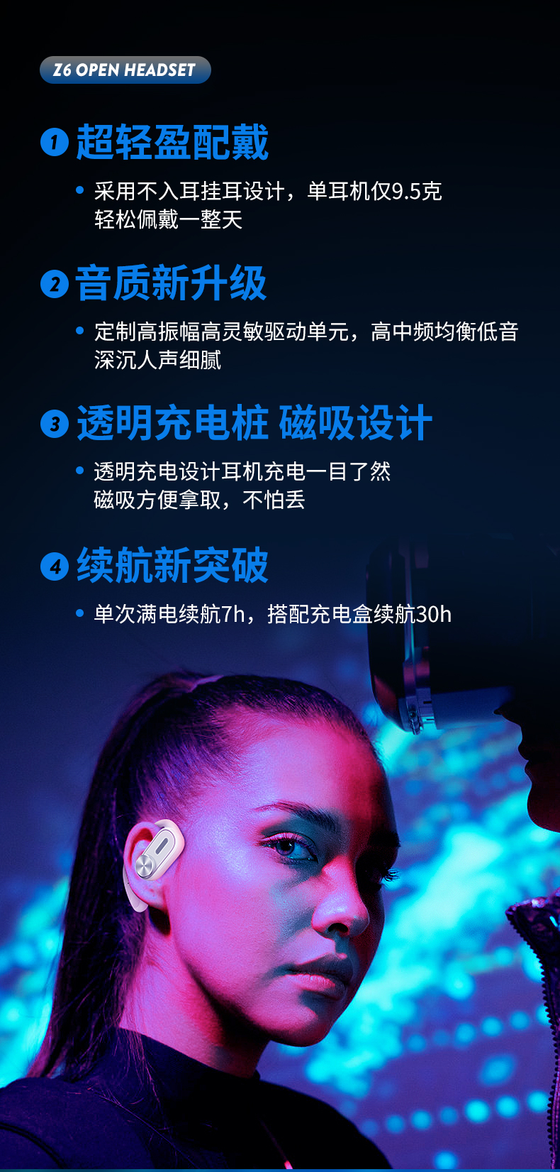 小幽不入耳开放式智能运动无线蓝牙耳机 挂耳式续航防水Z6