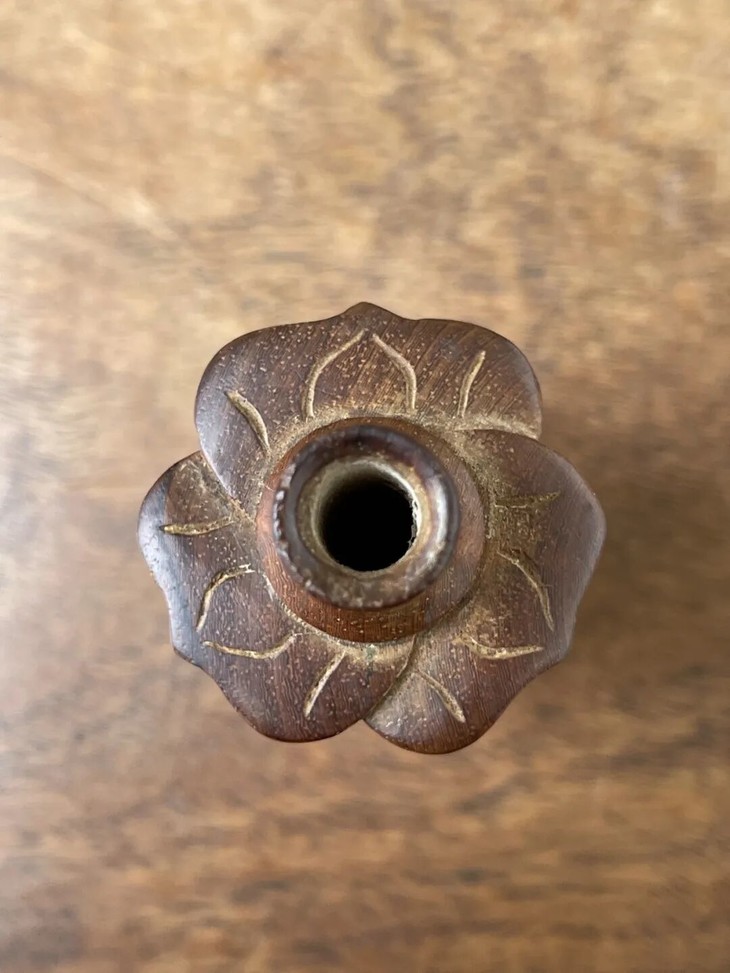 此海南黄花梨葵花形筒状花插,除表面正常使用痕迹外,基本保存完好。