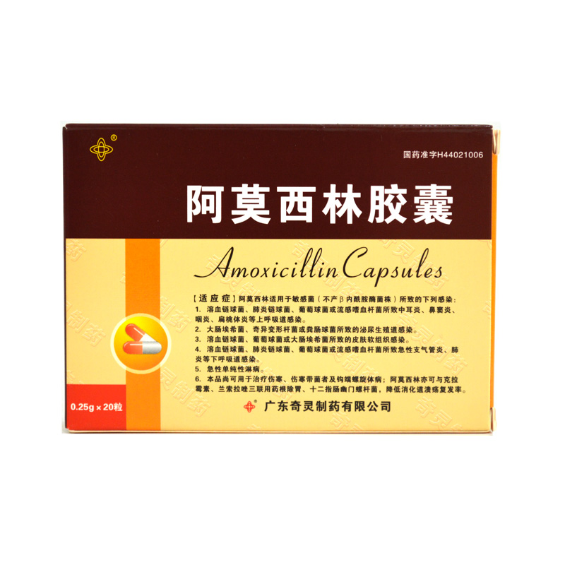 小奇灵 *胶囊 0.25g*20粒/盒 用于敏感菌所致感染如中耳炎鼻窦炎咽炎扁桃体炎气管炎肺炎泌尿生殖道感染皮肤软组织感染