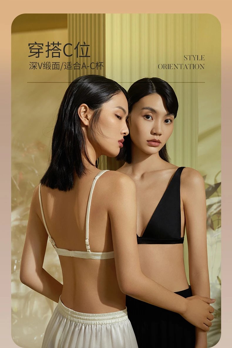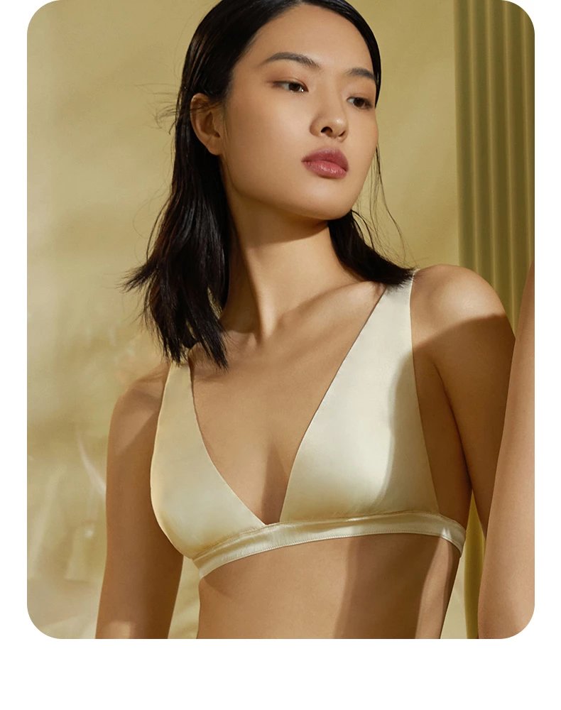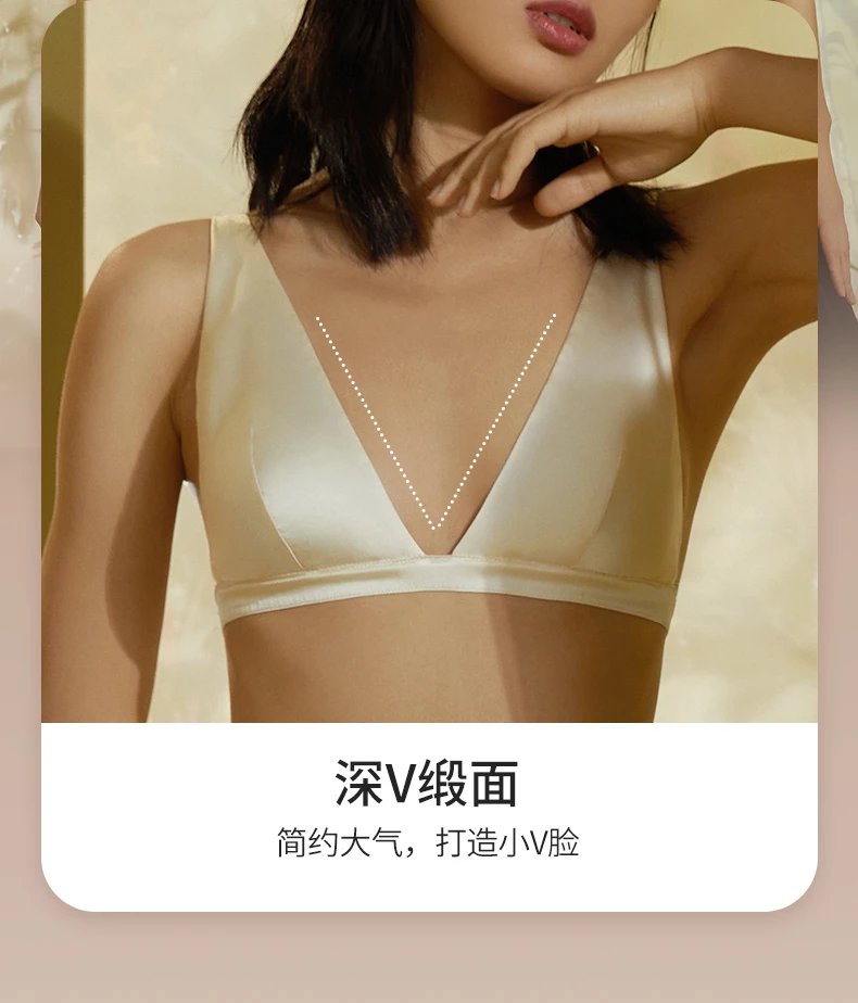 金三塔双面桑蚕丝深V时尚薄款亲肤透气女士弹力缎面内衣文胸新品 NZFCA310