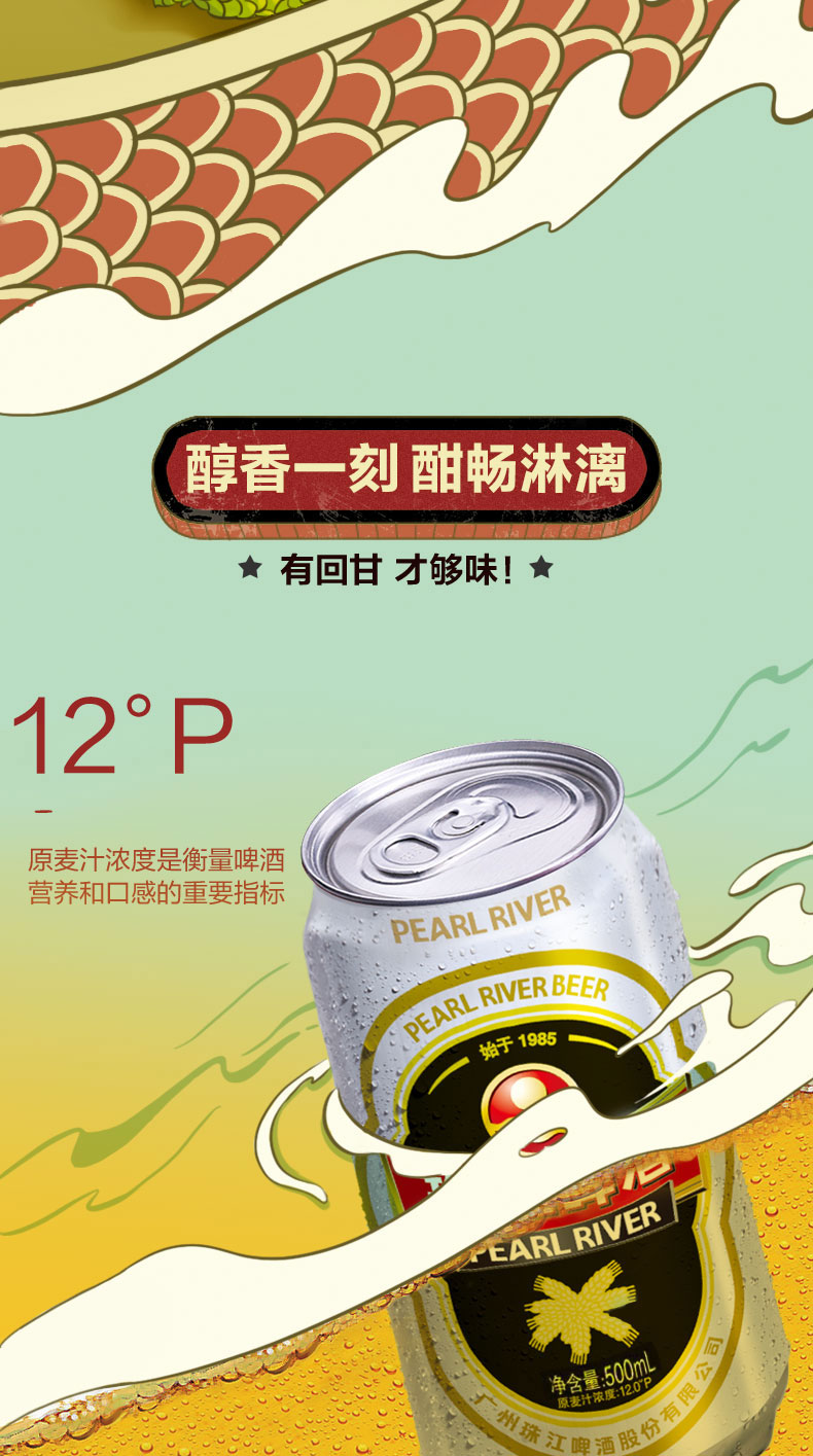 「汪苏泷代言」珠江啤酒经典老珠江500ml*12国产啤酒整箱罐装啤酒易拉罐