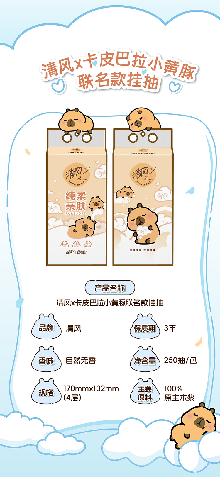 【官方自营】清风挂抽4层250抽10提送挂钩卡皮巴拉小黄豚联名款