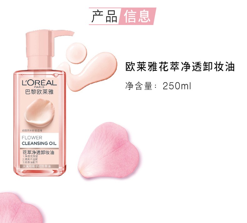 欧莱雅花萃净透卸妆油 250ml【30173059】
