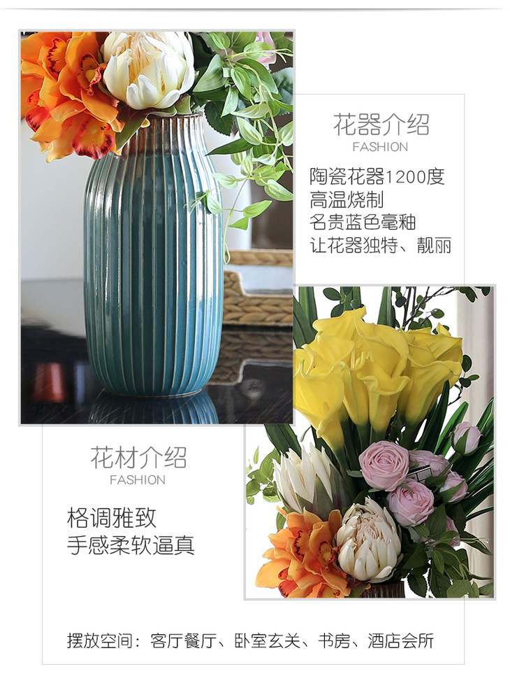 原野 都市自然风格仿真花假花套装 客厅酒店装饰摆件高档花瓶花器