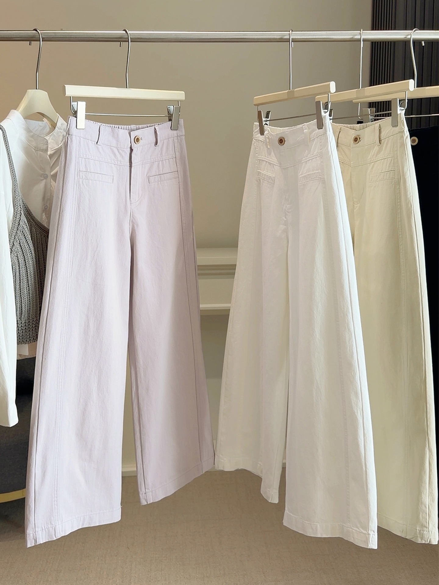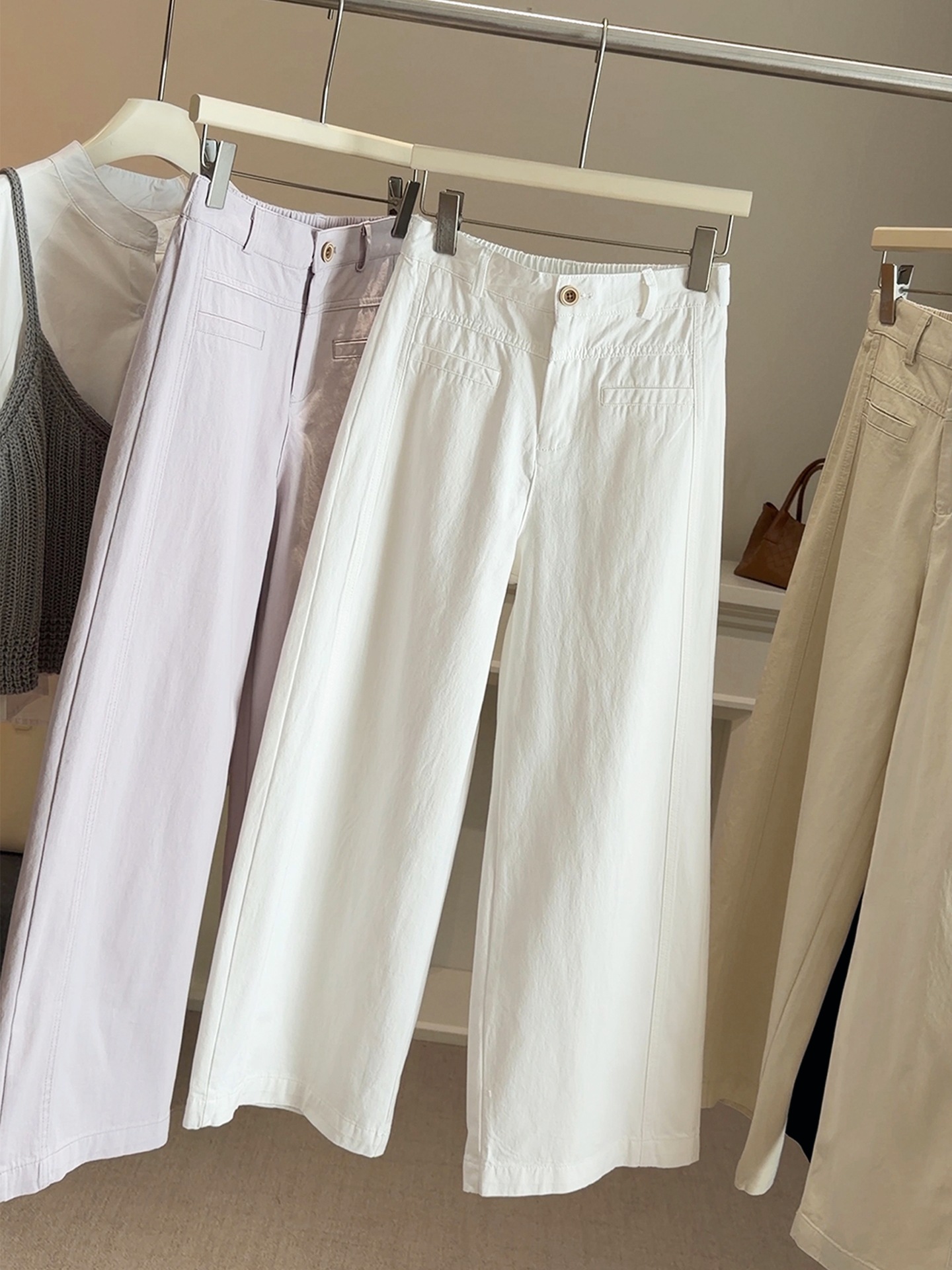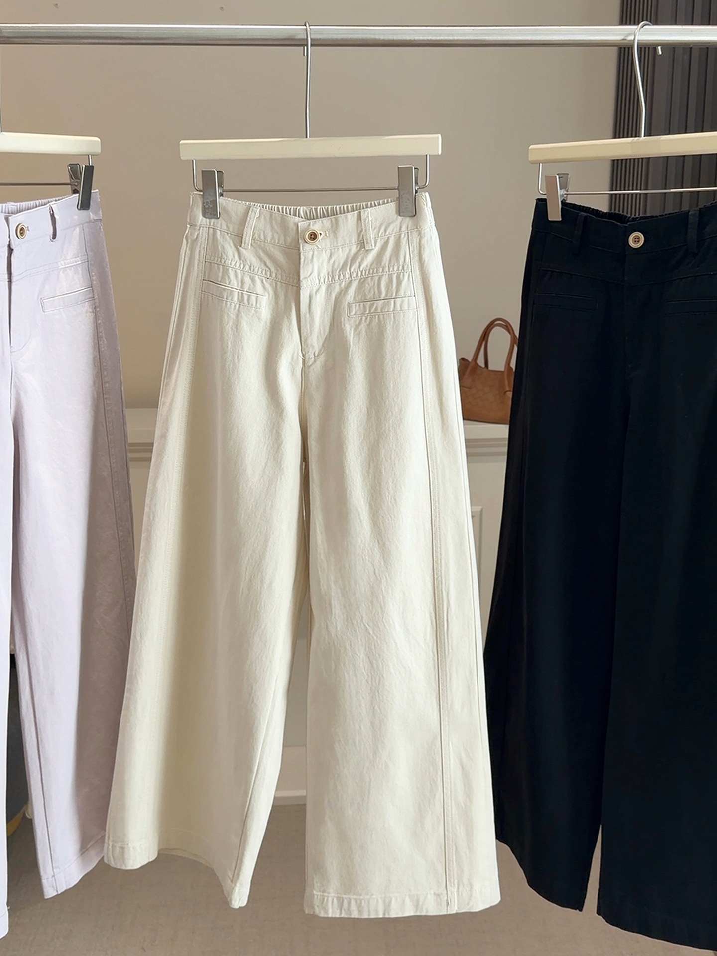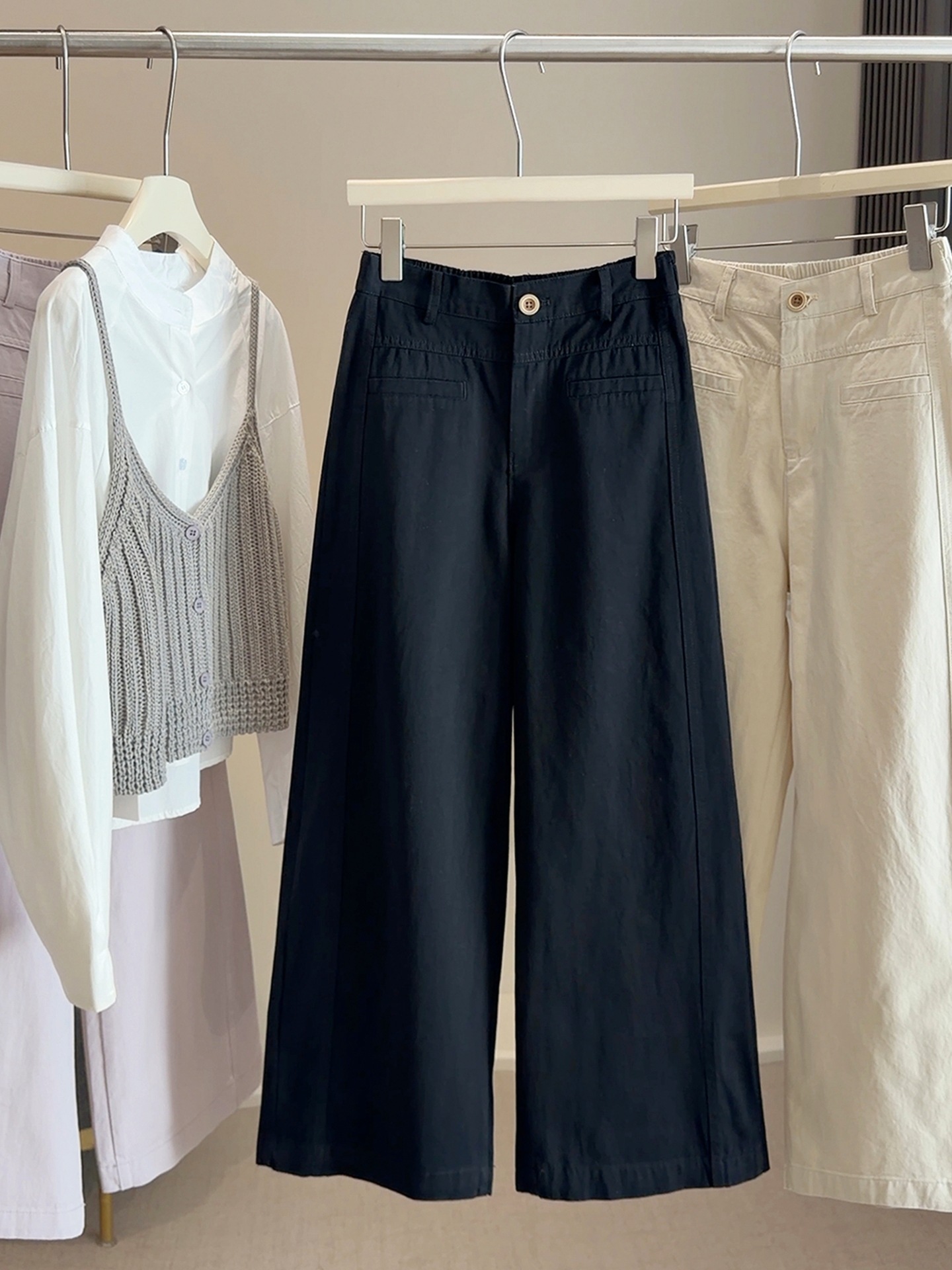 【春日蓝调】2026洗水棉阔腿休闲裤!女款春新款百搭高腰显瘦宽松九分直筒长裤子!