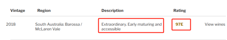 2018 年是澳洲巴罗萨谷的经典大年,帕克官网给予高达 97 分的肯定,并表示这一年的葡萄酒较早就达到适饮的阶段,无需等待太久。此酒距今已有 7 年,正值适饮期,状态依旧很好。